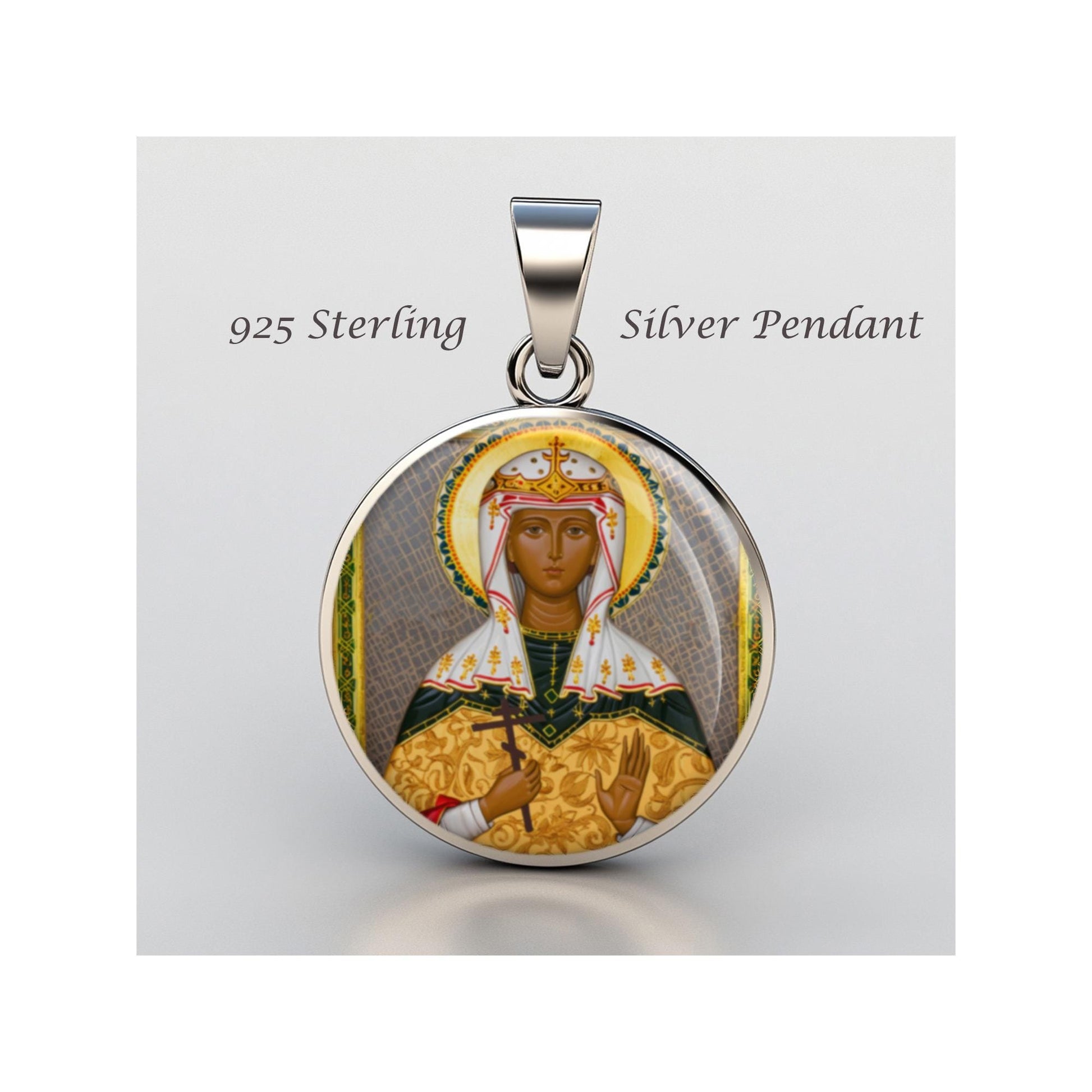 Dedicated to Saint Daria, this 20mm sterling silver pendant features a delicate design under a clear glass dome, crafted with high-quality paper. The pendant comes in a beautiful jewelry box, ready for gifting—perfect for birthdays, anniversaries, Christmas, Easter, Baptism, First Communion, Confirmation, Mother's Day, or as a thoughtful gift for a loved one.