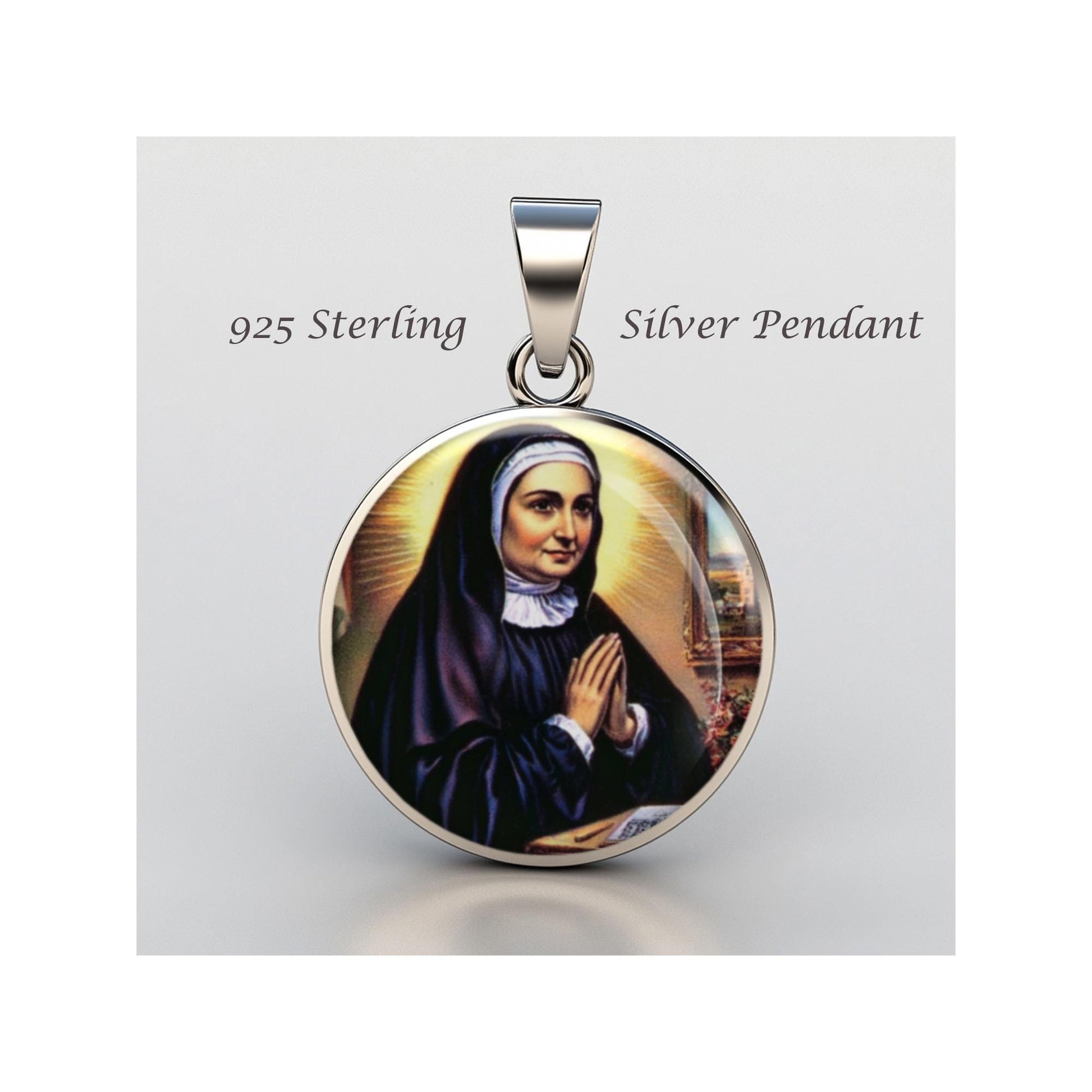 Dedicated to Saint Elisabeth Elisabetta Canori Mora, this 20mm sterling silver pendant features a delicate design under a clear glass dome, crafted with high-quality paper. The pendant comes in a beautiful jewelry box, ready for gifting—perfect for birthdays, anniversaries, Christmas, Easter, Baptism, First Communion, Confirmation, Mother's Day, or as a thoughtful gift for a loved one.