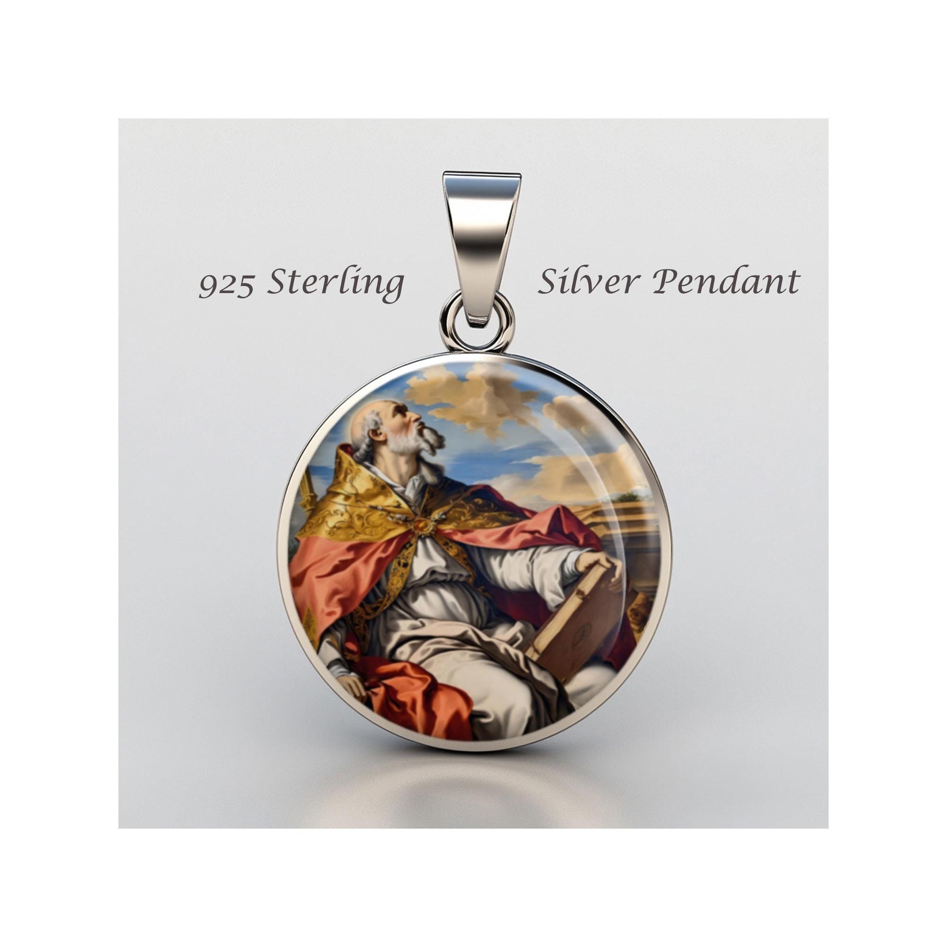 Dedicated to Saint Eusebius Of Vercelli, this 20mm sterling silver pendant features a delicate design under a clear glass dome, crafted with high-quality paper. The pendant comes in a beautiful jewelry box, ready for gifting—perfect for birthdays, anniversaries, Christmas, Easter, Baptism, First Communion, Confirmation, Mother's Day, or as a thoughtful gift for a loved one.