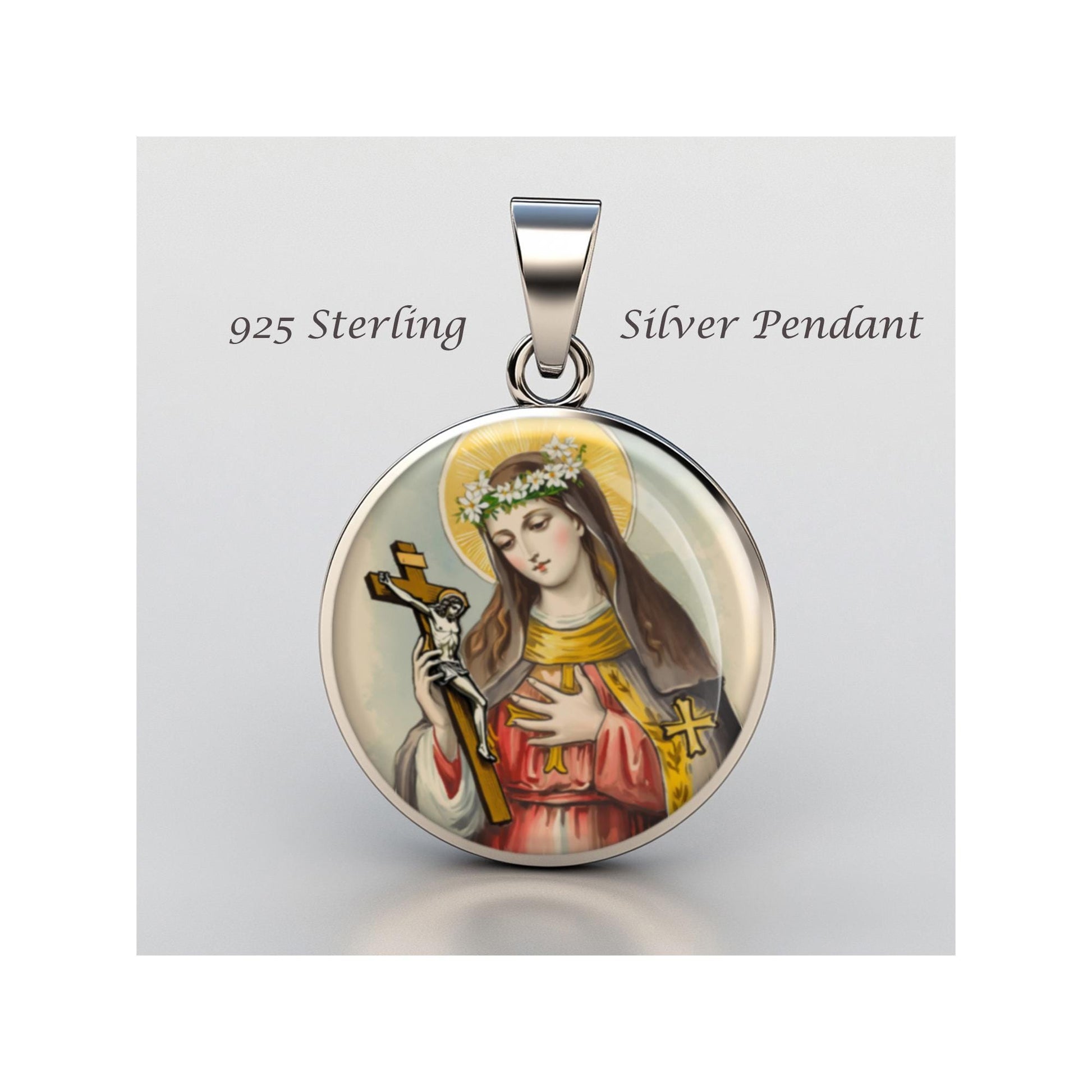 Dedicated to Saint Flora, this 20mm sterling silver pendant features a delicate design under a clear glass dome, crafted with high-quality paper. The pendant comes in a beautiful jewelry box, ready for gifting—perfect for birthdays, anniversaries, Christmas, Easter, Baptism, First Communion, Confirmation, Mother's Day, or as a thoughtful gift for a loved one.