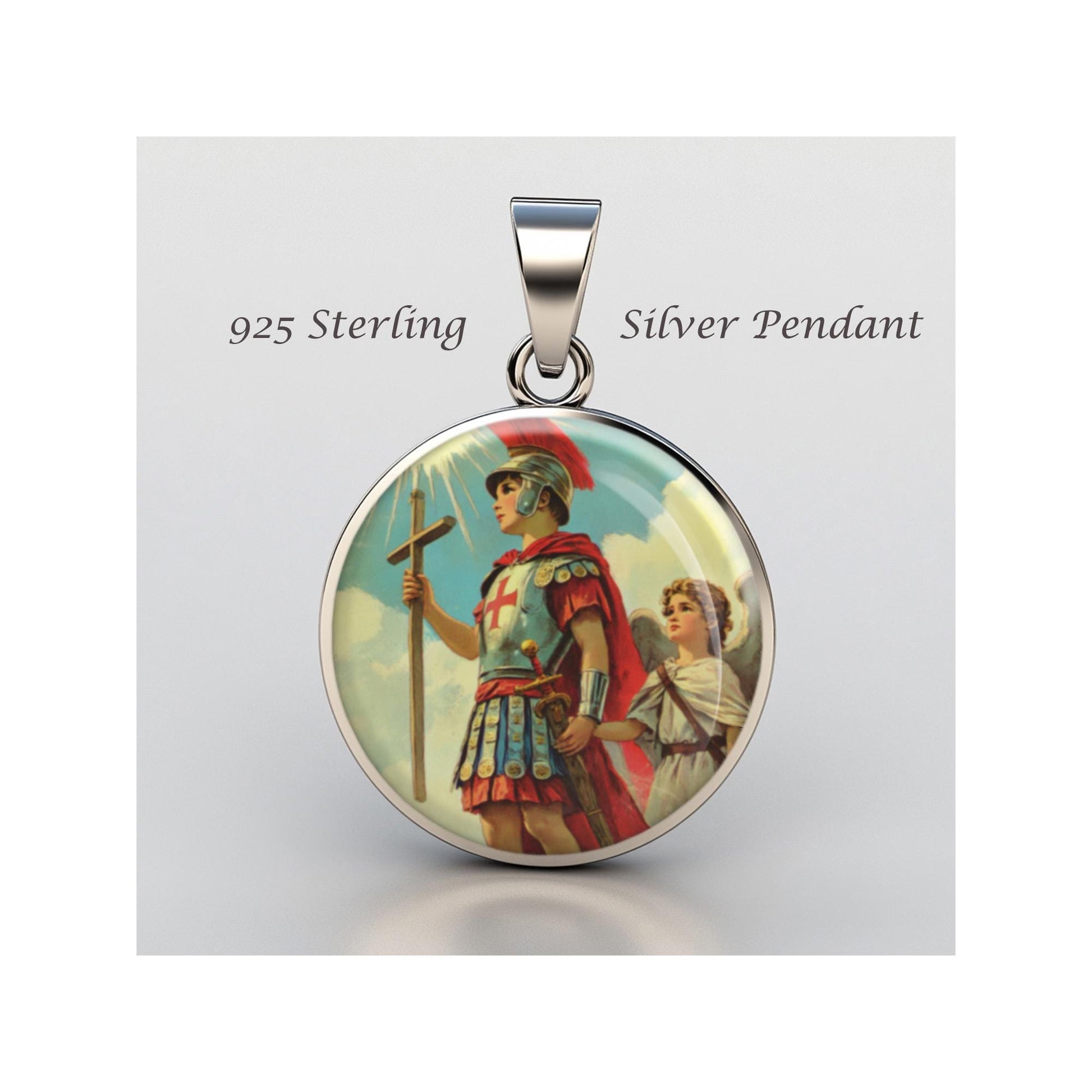 Dedicated to Saint Florian, this 20mm sterling silver pendant features a delicate design under a clear glass dome, crafted with high-quality paper. The pendant comes in a beautiful jewelry box, ready for gifting—perfect for birthdays, anniversaries, Christmas, Easter, Baptism, First Communion, Confirmation, Mother's Day, or as a thoughtful gift for a loved one.