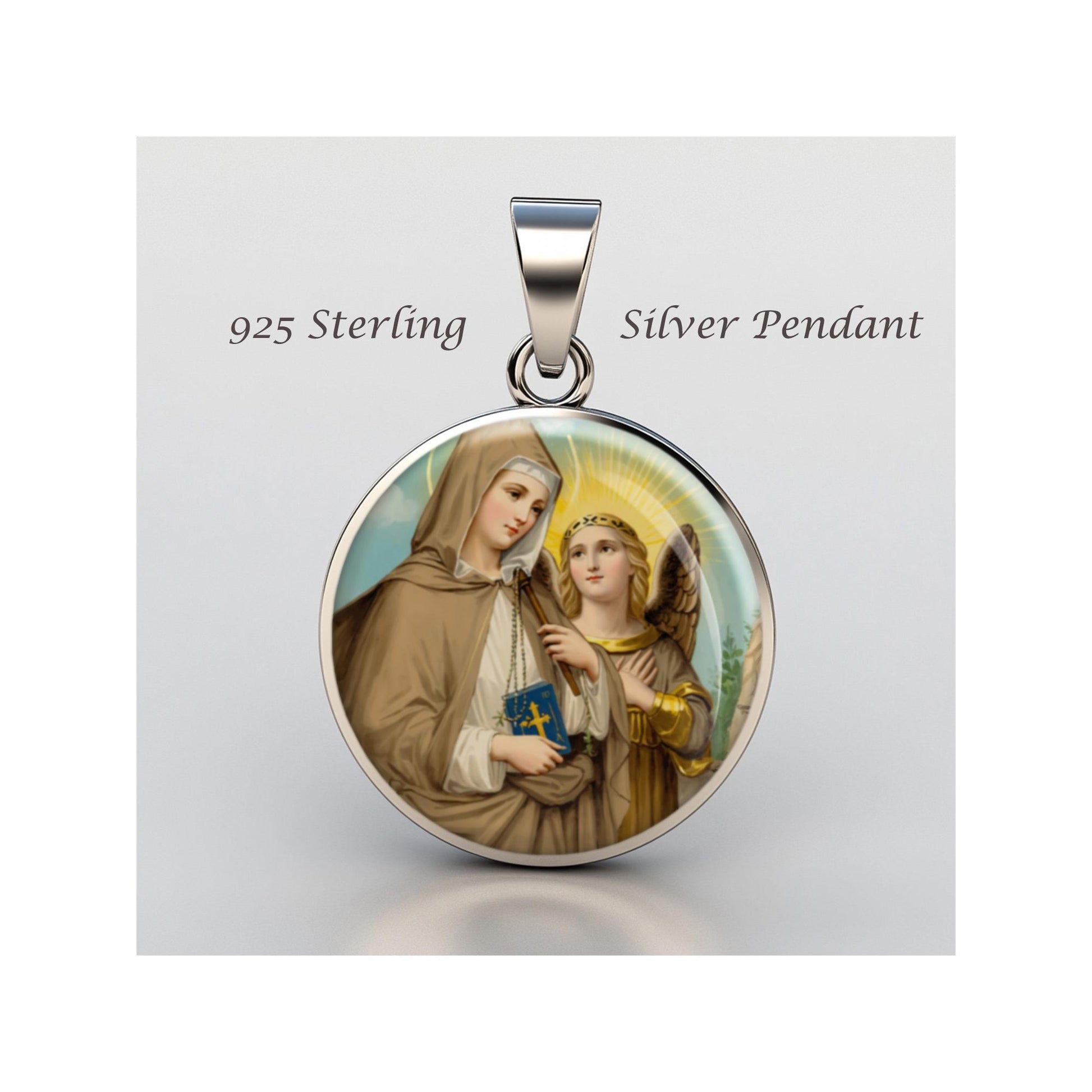 Dedicated to Saint Frances Of Rome, this 20mm sterling silver pendant features a delicate design under a clear glass dome, crafted with high-quality paper. The pendant comes in a beautiful jewelry box, ready for gifting—perfect for birthdays, anniversaries, Christmas, Easter, Baptism, First Communion, Confirmation, Mother's Day, or as a thoughtful gift for a loved one.