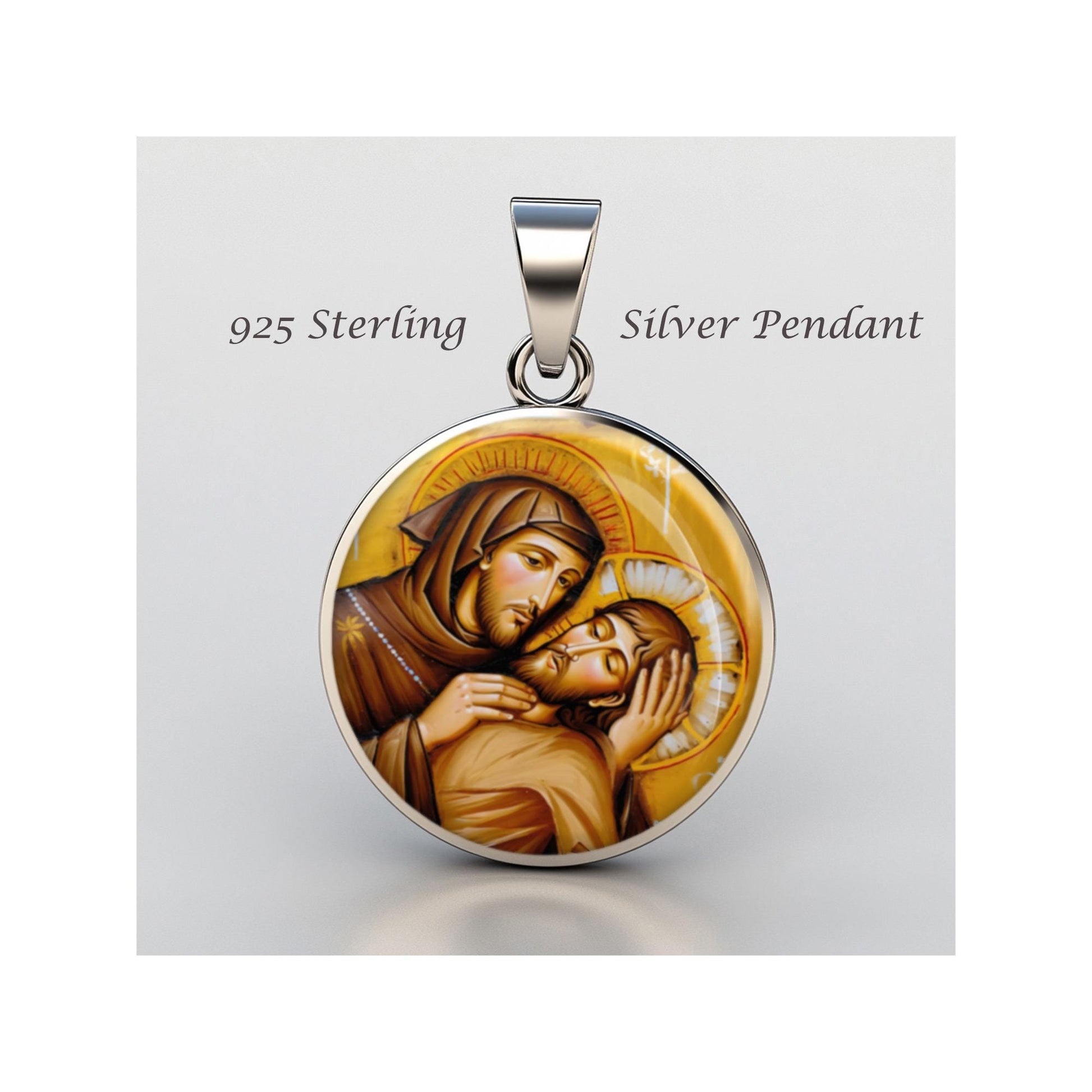 Dedicated to Saint Francis Of Assisi And Christ, this 20mm sterling silver pendant features a delicate design under a clear glass dome, crafted with high-quality paper. The pendant comes in a beautiful jewelry box, ready for gifting—perfect for birthdays, anniversaries, Christmas, Easter, Baptism, First Communion, Confirmation, Mother's Day, or as a thoughtful gift for a loved one.