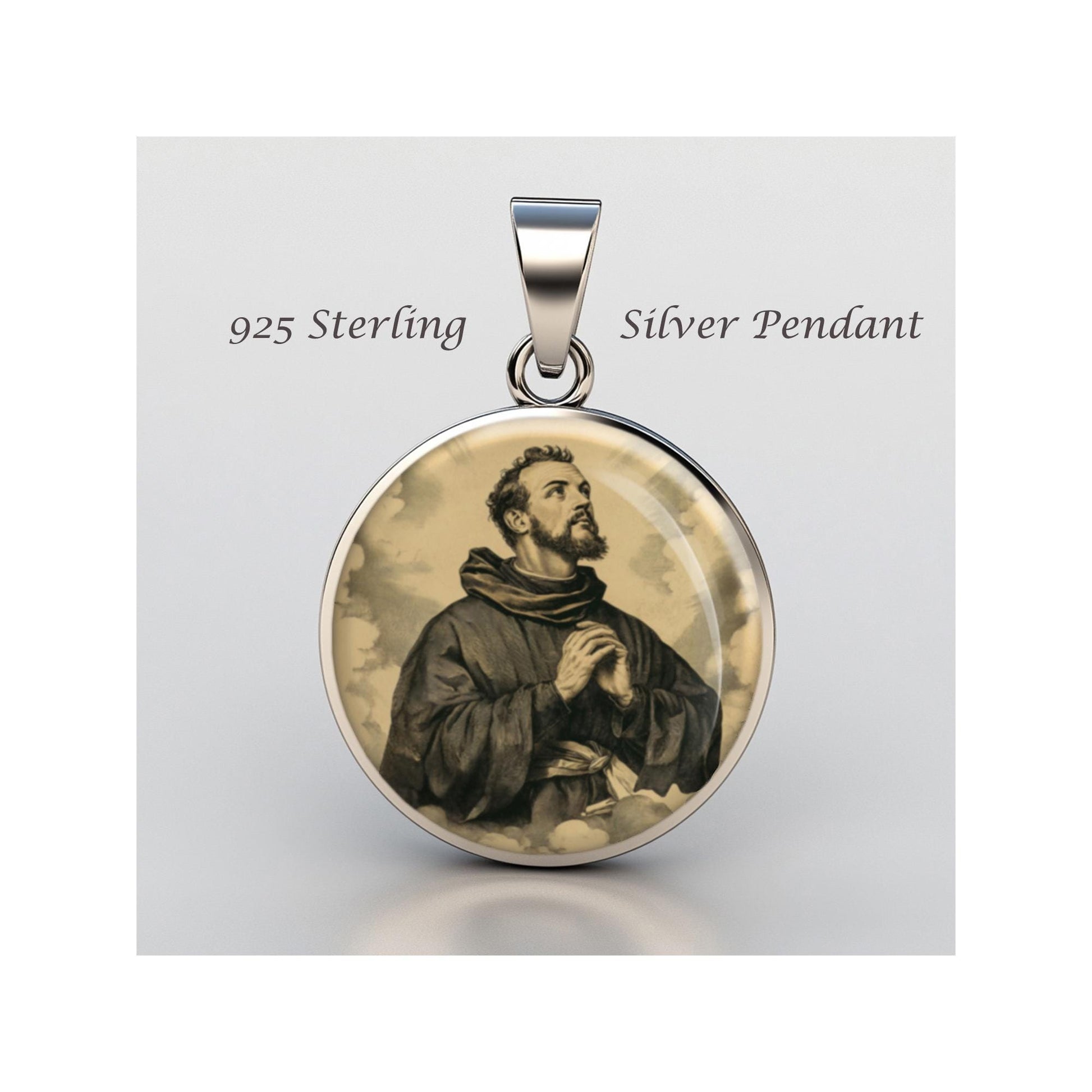 Dedicated to Saint Francis Xavier, this 20mm sterling silver pendant features a delicate design under a clear glass dome, crafted with high-quality paper. The pendant comes in a beautiful jewelry box, ready for gifting—perfect for birthdays, anniversaries, Christmas, Easter, Baptism, First Communion, Confirmation, Mother's Day, or as a thoughtful gift for a loved one.