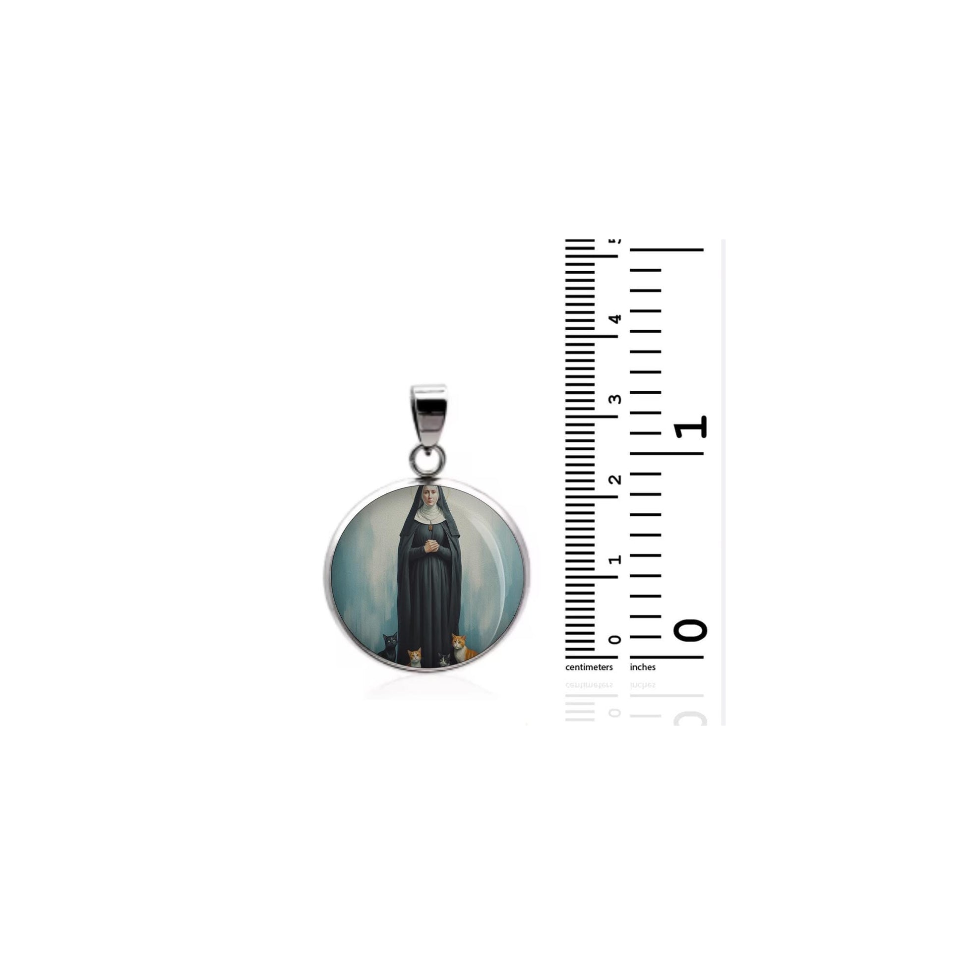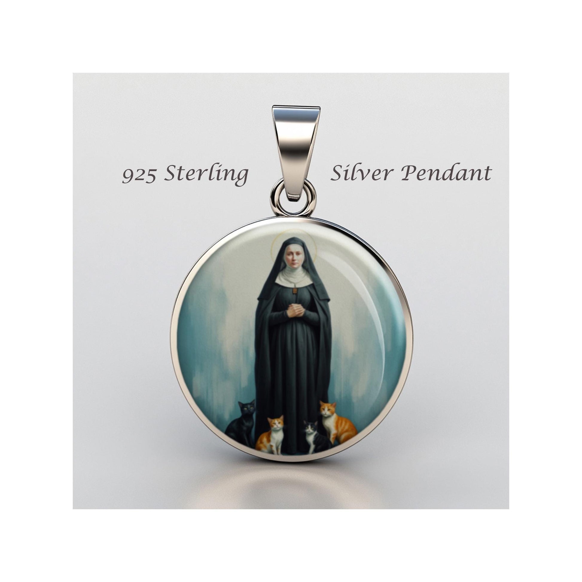 Dedicated to Saint Gertrude Of Nivelles, this 20mm sterling silver pendant features a delicate design under a clear glass dome, crafted with high-quality paper. The pendant comes in a beautiful jewelry box, ready for gifting—perfect for birthdays, anniversaries, Christmas, Easter, Baptism, First Communion, Confirmation, Mother's Day, or as a thoughtful gift for a loved one.