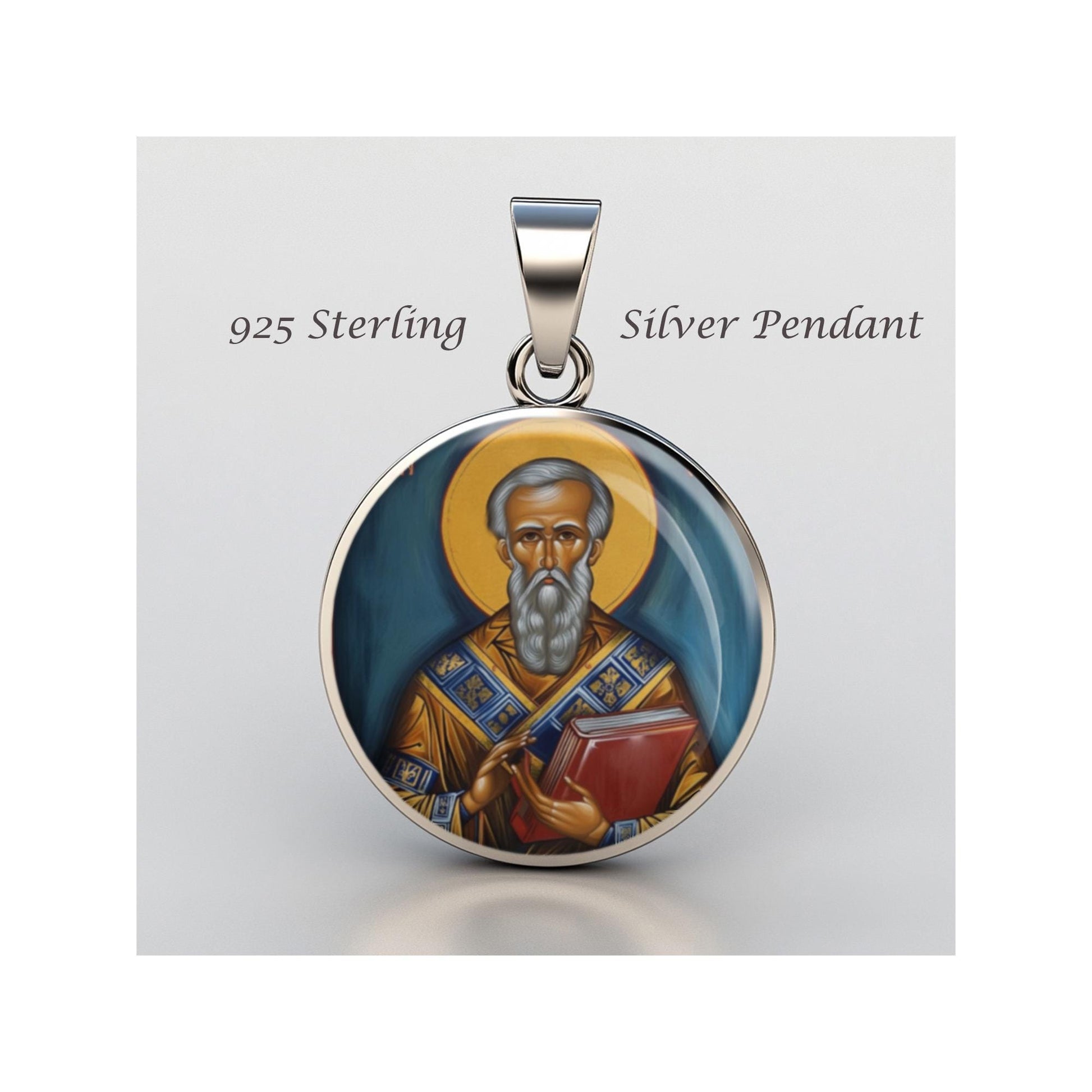 Dedicated to Saint Hieromartyr Hermolaos, this 20mm sterling silver pendant features a delicate design under a clear glass dome, crafted with high-quality paper. The pendant comes in a beautiful jewelry box, ready for gifting—perfect for birthdays, anniversaries, Christmas, Easter, Baptism, First Communion, Confirmation, Mother's Day, or as a thoughtful gift for a loved one.