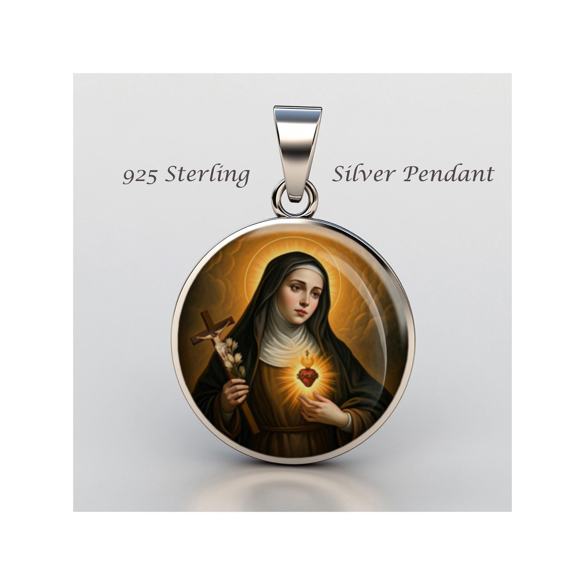 Dedicated to Saint Jane Frances De Chantal, this 20mm sterling silver pendant features a delicate design under a clear glass dome, crafted with high-quality paper. The pendant comes in a beautiful jewelry box, ready for gifting—perfect for birthdays, anniversaries, Christmas, Easter, Baptism, First Communion, Confirmation, Mother's Day, or as a thoughtful gift for a loved one.