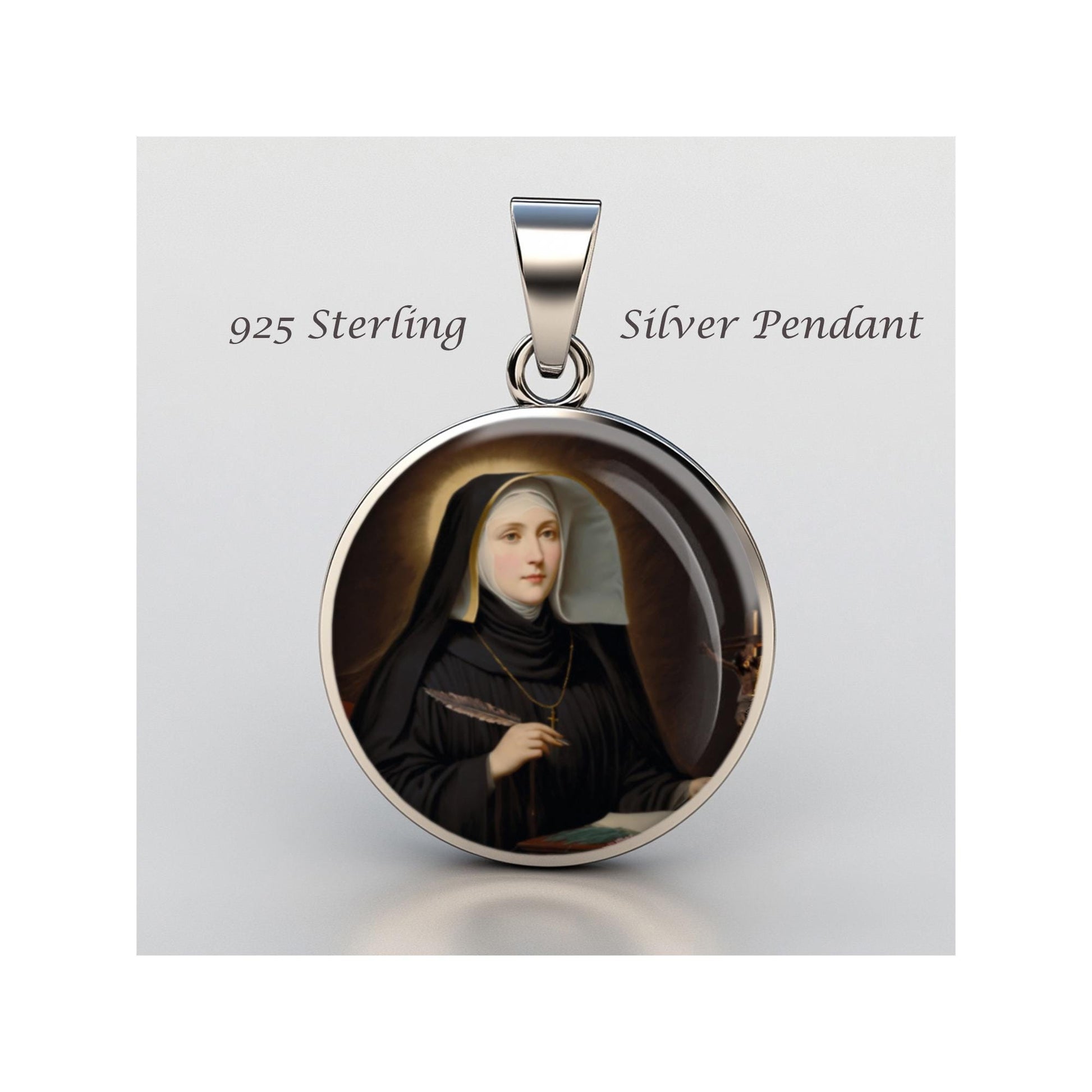 Dedicated to Saint Jeanne Elisabeth, this 20mm sterling silver pendant features a delicate design under a clear glass dome, crafted with high-quality paper. The pendant comes in a beautiful jewelry box, ready for gifting—perfect for birthdays, anniversaries, Christmas, Easter, Baptism, First Communion, Confirmation, Mother's Day, or as a thoughtful gift for a loved one.