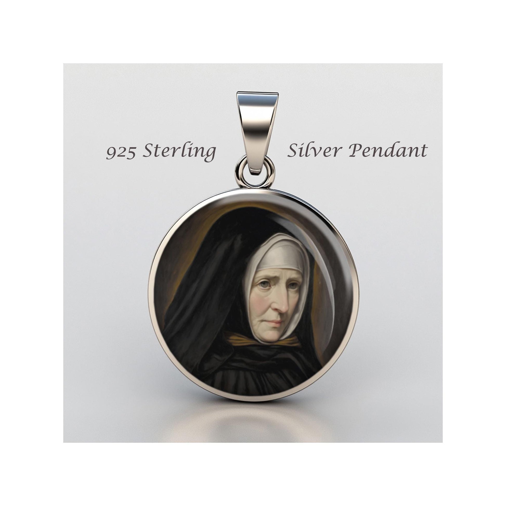 Dedicated to Saint Jeanne Jugan, this 20mm sterling silver pendant features a delicate design under a clear glass dome, crafted with high-quality paper. The pendant comes in a beautiful jewelry box, ready for gifting—perfect for birthdays, anniversaries, Christmas, Easter, Baptism, First Communion, Confirmation, Mother's Day, or as a thoughtful gift for a loved one.