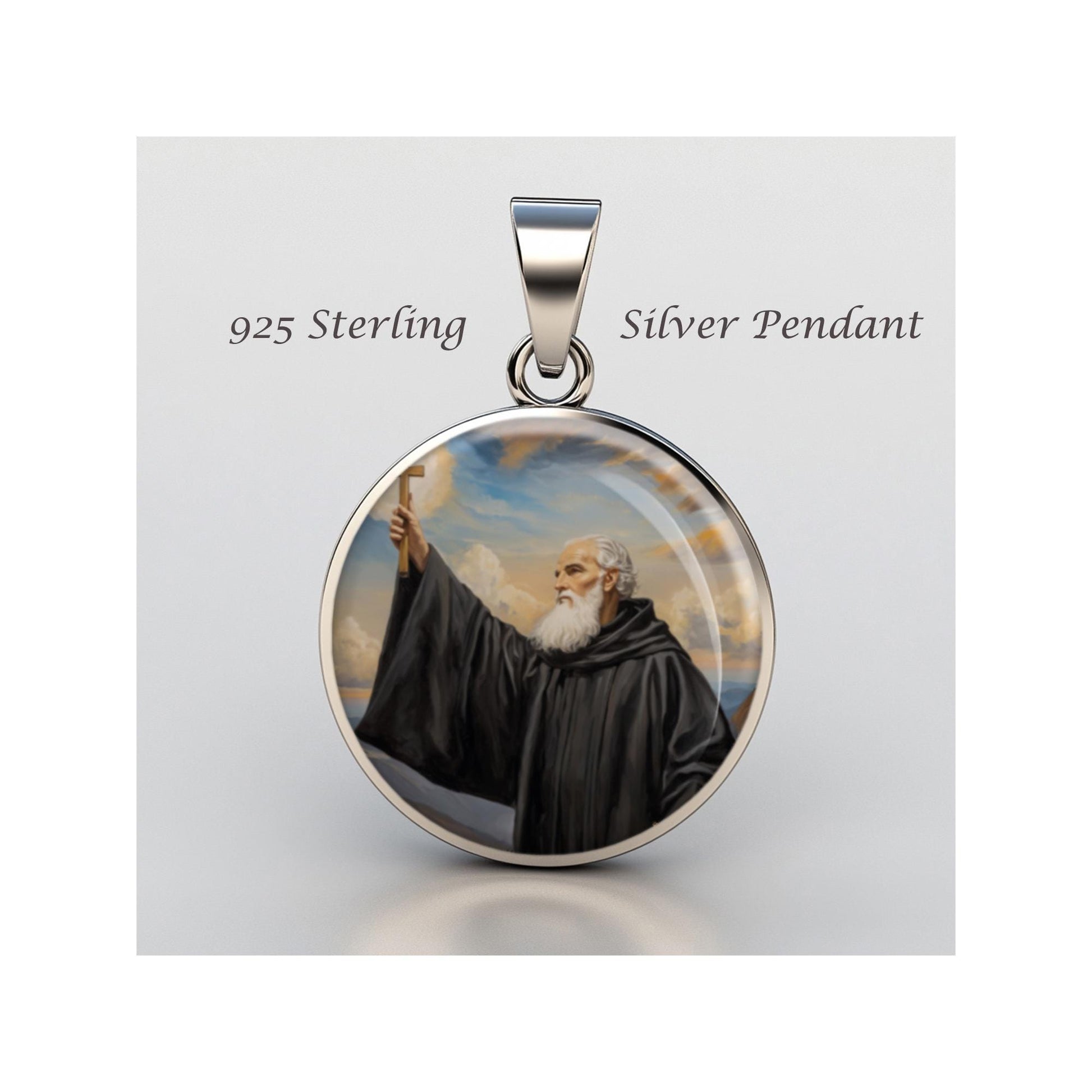 Dedicated to Saint John Gualbert Abbot, this 20mm sterling silver pendant features a delicate design under a clear glass dome, crafted with high-quality paper. The pendant comes in a beautiful jewelry box, ready for gifting—perfect for birthdays, anniversaries, Christmas, Easter, Baptism, First Communion, Confirmation, Mother's Day, or as a thoughtful gift for a loved one.