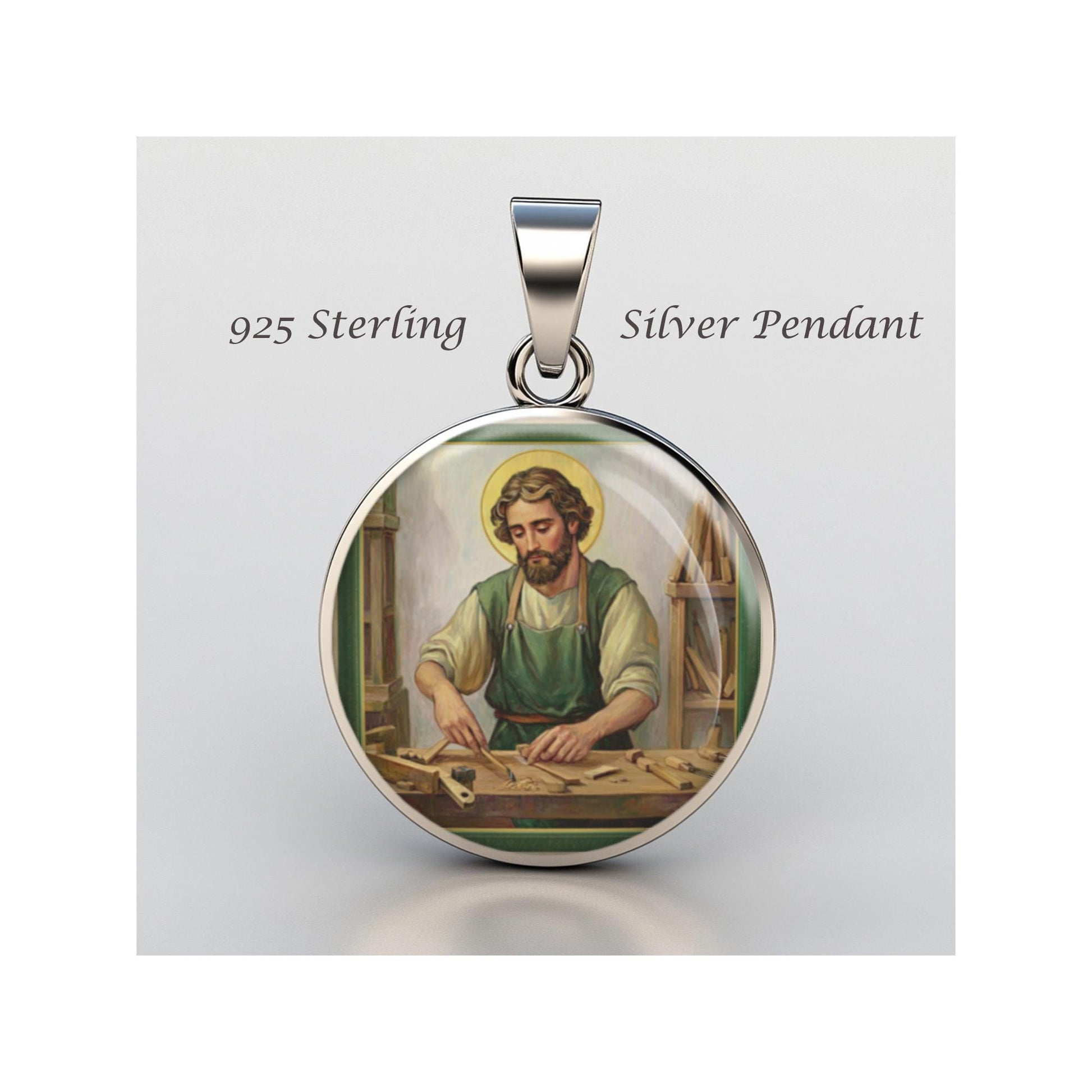 Dedicated to Saint Joseph The Worker, this 20mm sterling silver pendant features a delicate design under a clear glass dome, crafted with high-quality paper. The pendant comes in a beautiful jewelry box, ready for gifting—perfect for birthdays, anniversaries, Christmas, Easter, Baptism, First Communion, Confirmation, Mother's Day, or as a thoughtful gift for a loved one.