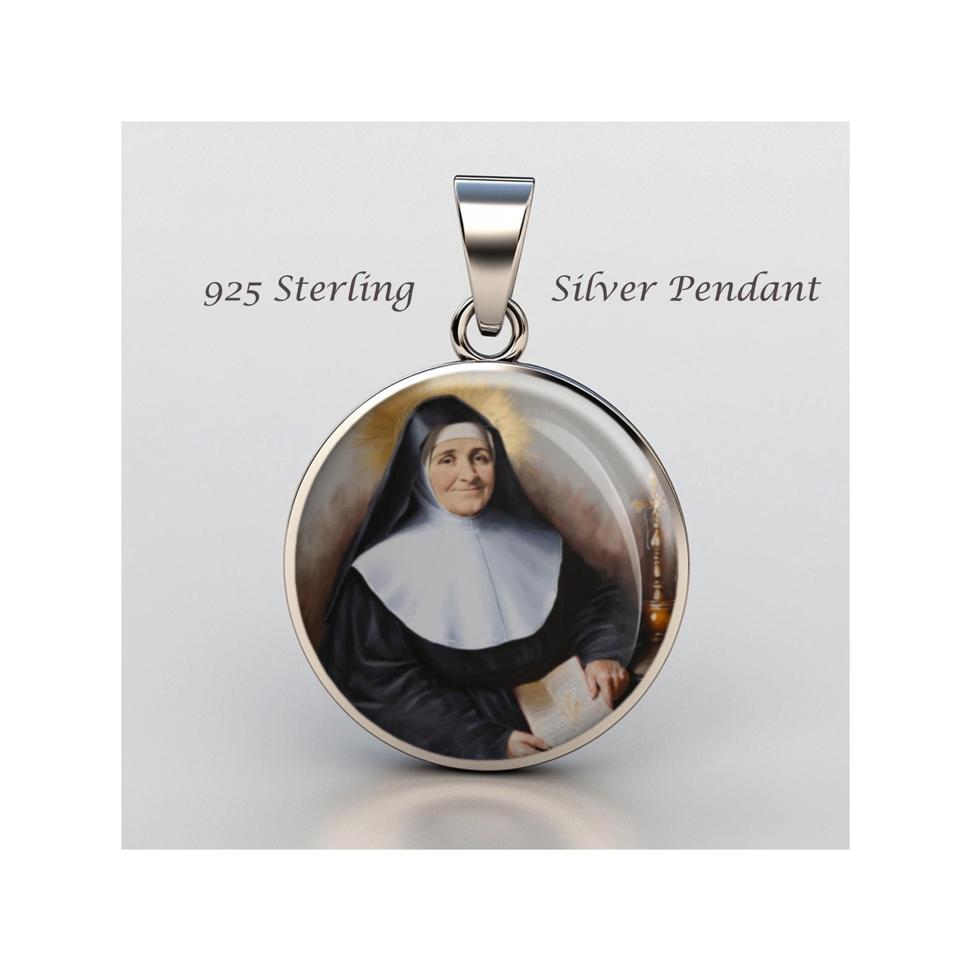 Dedicated to Saint Julia Julie Billiart, this 20mm sterling silver pendant features a delicate design under a clear glass dome, crafted with high-quality paper. The pendant comes in a beautiful jewelry box, ready for gifting—perfect for birthdays, anniversaries, Christmas, Easter, Baptism, First Communion, Confirmation, Mother's Day, or as a thoughtful gift for a loved one.