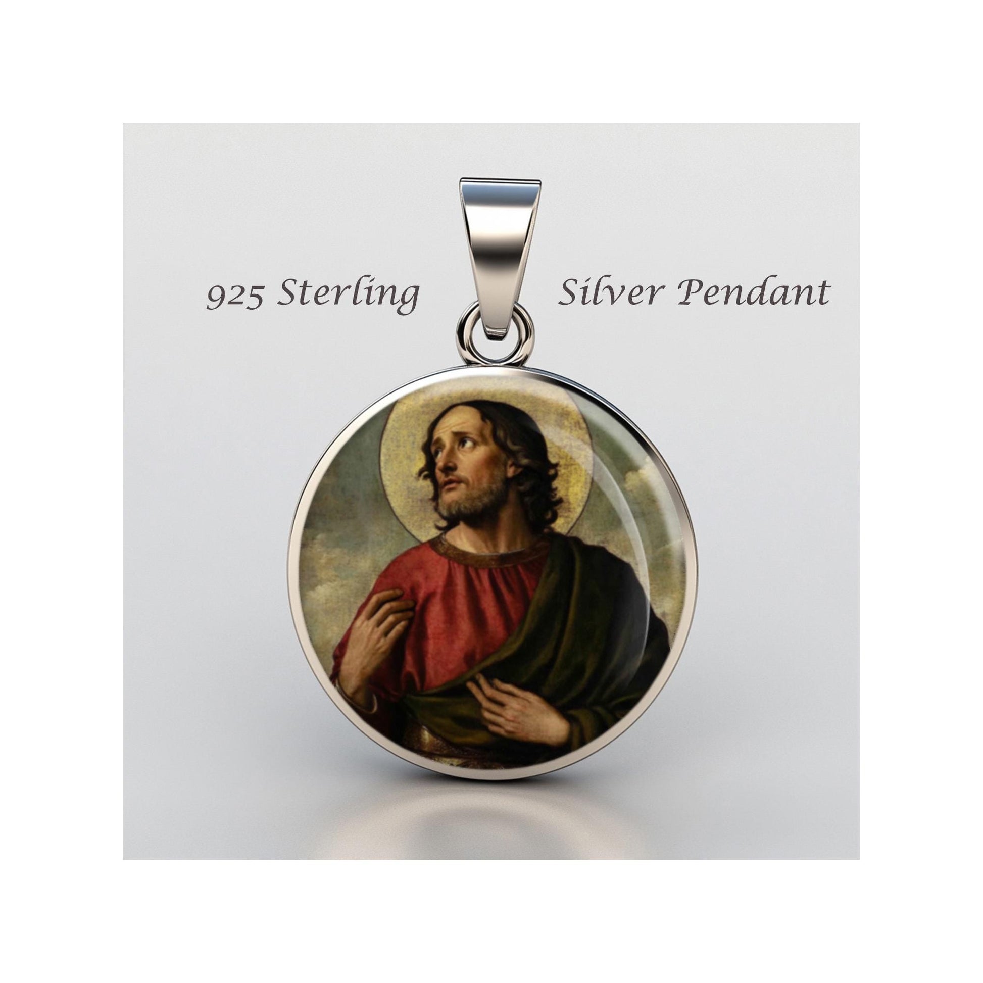 Dedicated to Saint Julian The Hospitaller, this 20mm sterling silver pendant features a delicate design under a clear glass dome, crafted with high-quality paper. The pendant comes in a beautiful jewelry box, ready for gifting—perfect for birthdays, anniversaries, Christmas, Easter, Baptism, First Communion, Confirmation, Mother's Day, or as a thoughtful gift for a loved one.
