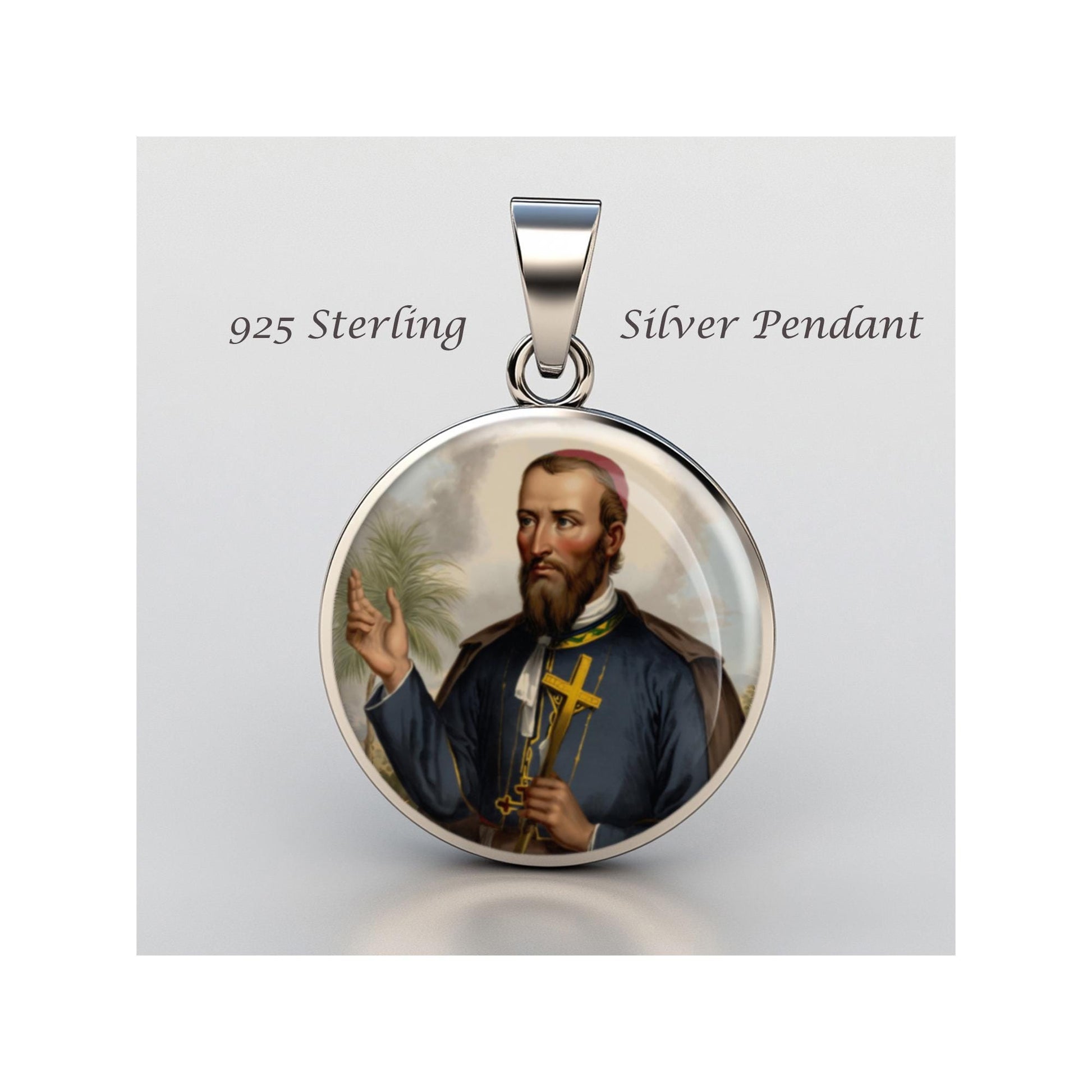 Dedicated to Saint Justin De Jacobis, this 20mm sterling silver pendant features a delicate design under a clear glass dome, crafted with high-quality paper. The pendant comes in a beautiful jewelry box, ready for gifting—perfect for birthdays, anniversaries, Christmas, Easter, Baptism, First Communion, Confirmation, Mother's Day, or as a thoughtful gift for a loved one.