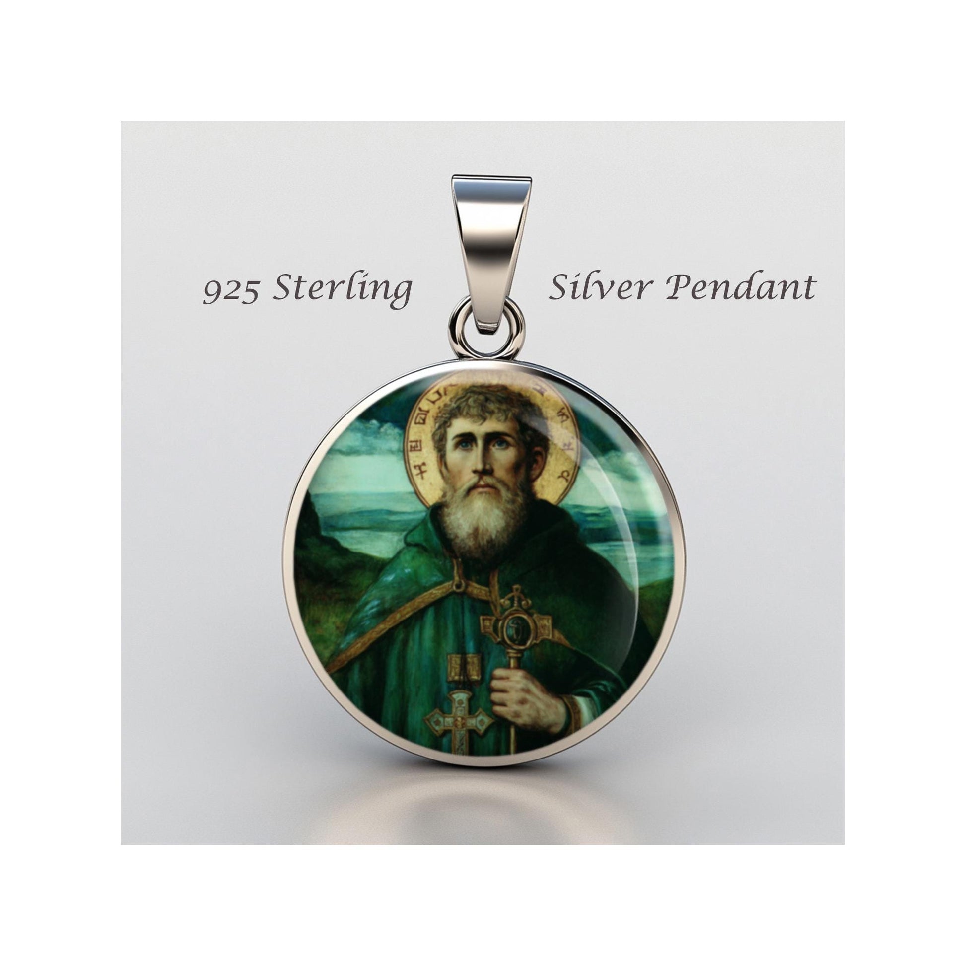 Dedicated to Saint Kevin Of Glendalough, this 20mm sterling silver pendant features a delicate design under a clear glass dome, crafted with high-quality paper. The pendant comes in a beautiful jewelry box, ready for gifting—perfect for birthdays, anniversaries, Christmas, Easter, Baptism, First Communion, Confirmation, Mother's Day, or as a thoughtful gift for a loved one.