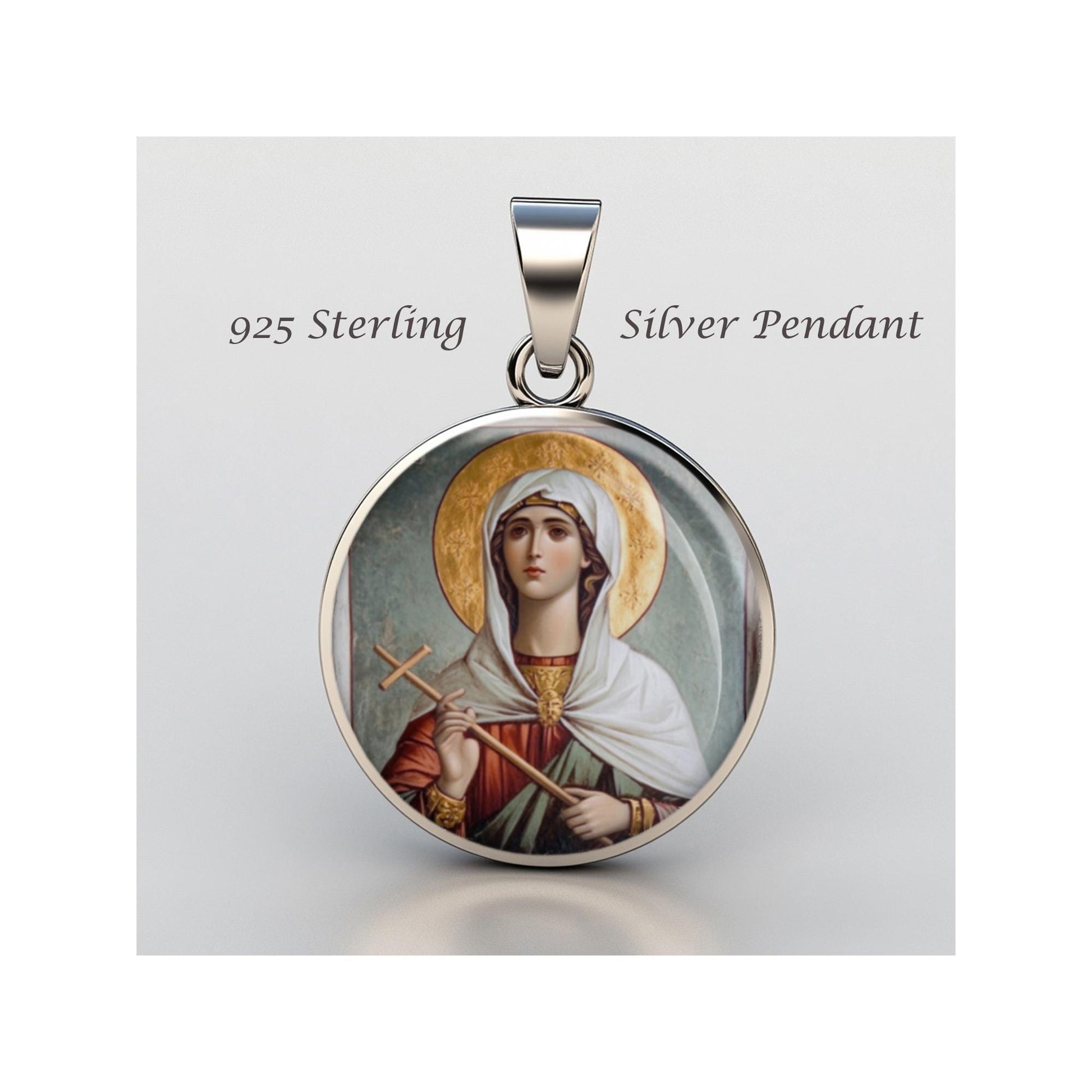 Dedicated to Saint Kyriaki The Great Martyr, this 20mm sterling silver pendant features a delicate design under a clear glass dome, crafted with high-quality paper. The pendant comes in a beautiful jewelry box, ready for gifting—perfect for birthdays, anniversaries, Christmas, Easter, Baptism, First Communion, Confirmation, Mother's Day, or as a thoughtful gift for a loved one.