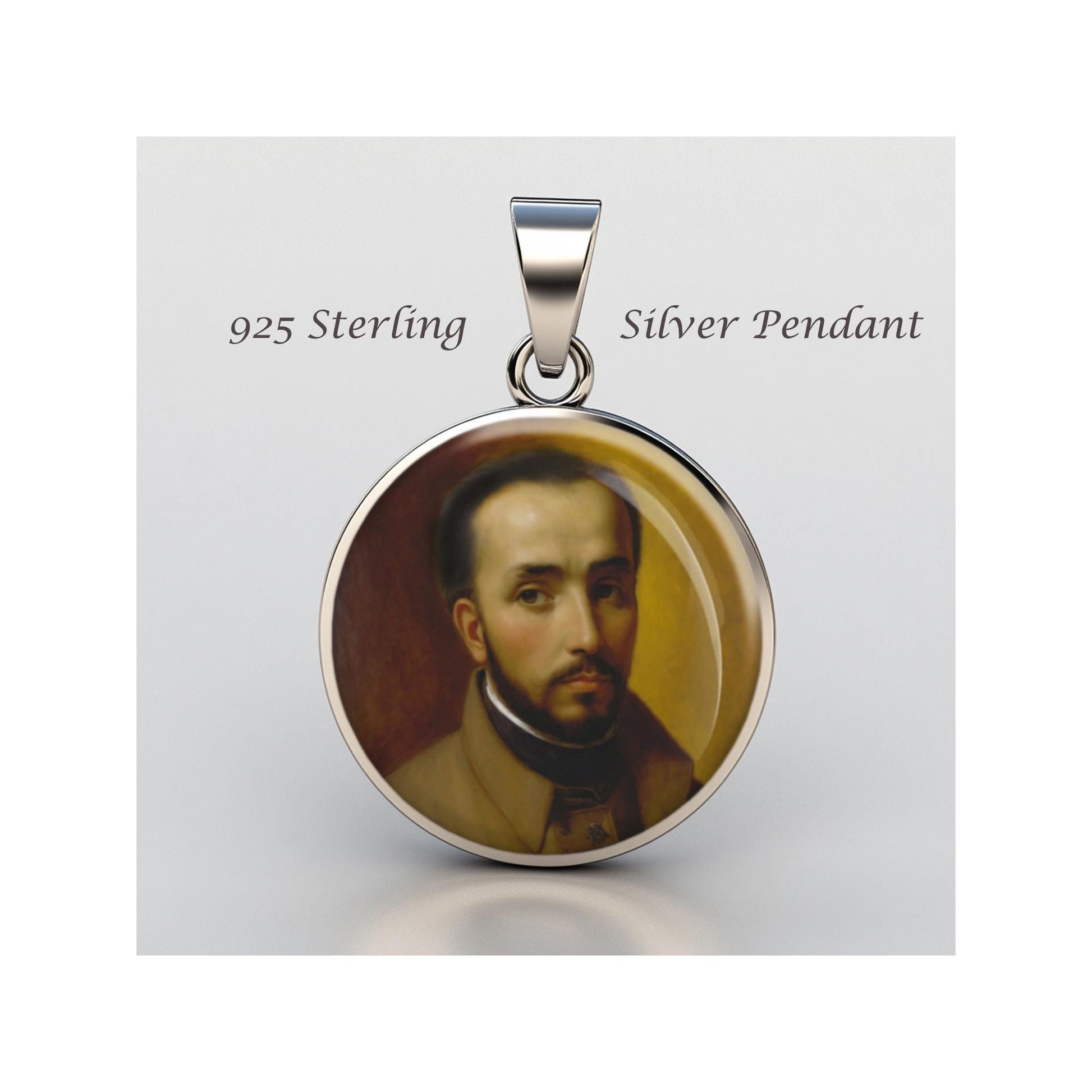 Dedicated to Saint Lalemant Gabriel, this 20mm sterling silver pendant features a delicate design under a clear glass dome, crafted with high-quality paper. The pendant comes in a beautiful jewelry box, ready for gifting—perfect for birthdays, anniversaries, Christmas, Easter, Baptism, First Communion, Confirmation, Mother's Day, or as a thoughtful gift for a loved one.