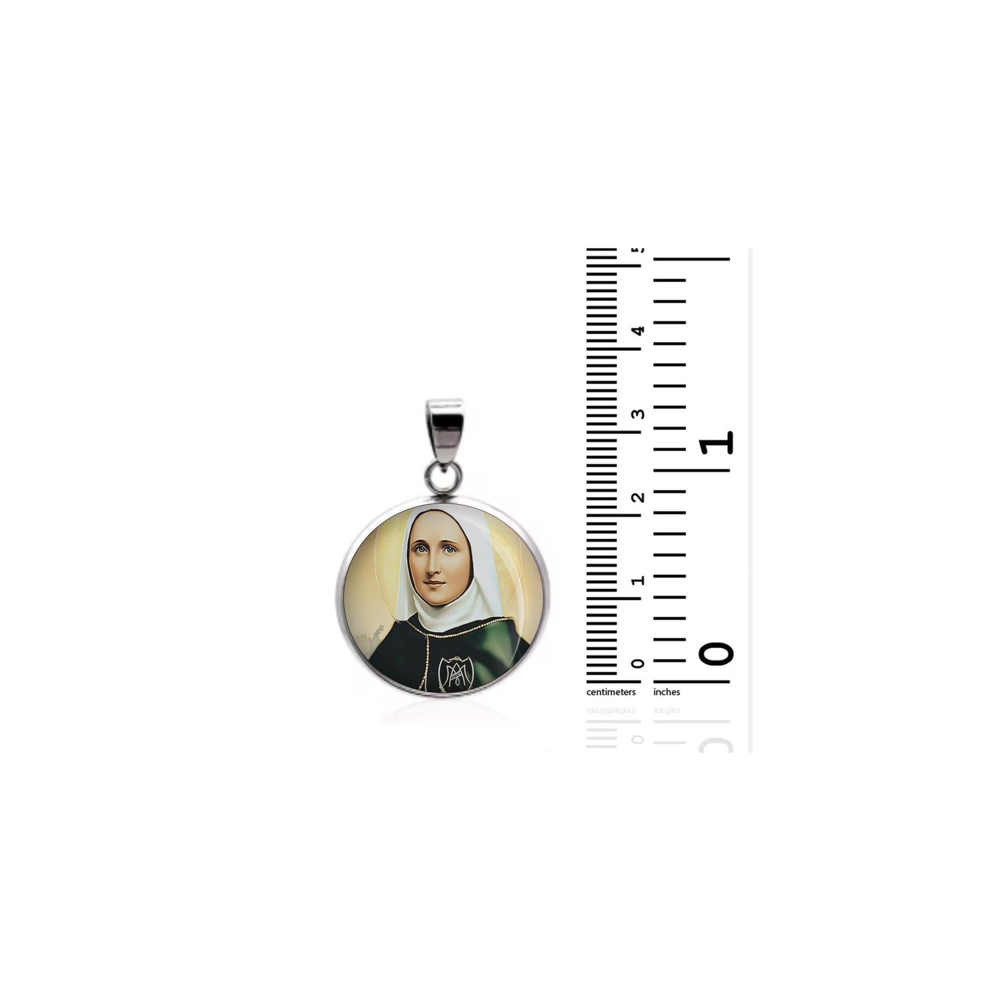 Dedicated to Saint Laura Montoya, this 20mm sterling silver pendant features a delicate design under a clear glass dome, crafted with high-quality paper. The pendant comes in a beautiful jewelry box, ready for gifting—perfect for birthdays, anniversaries, Christmas, Easter, Baptism, First Communion, Confirmation, Mother's Day, or as a thoughtful gift for a loved one.