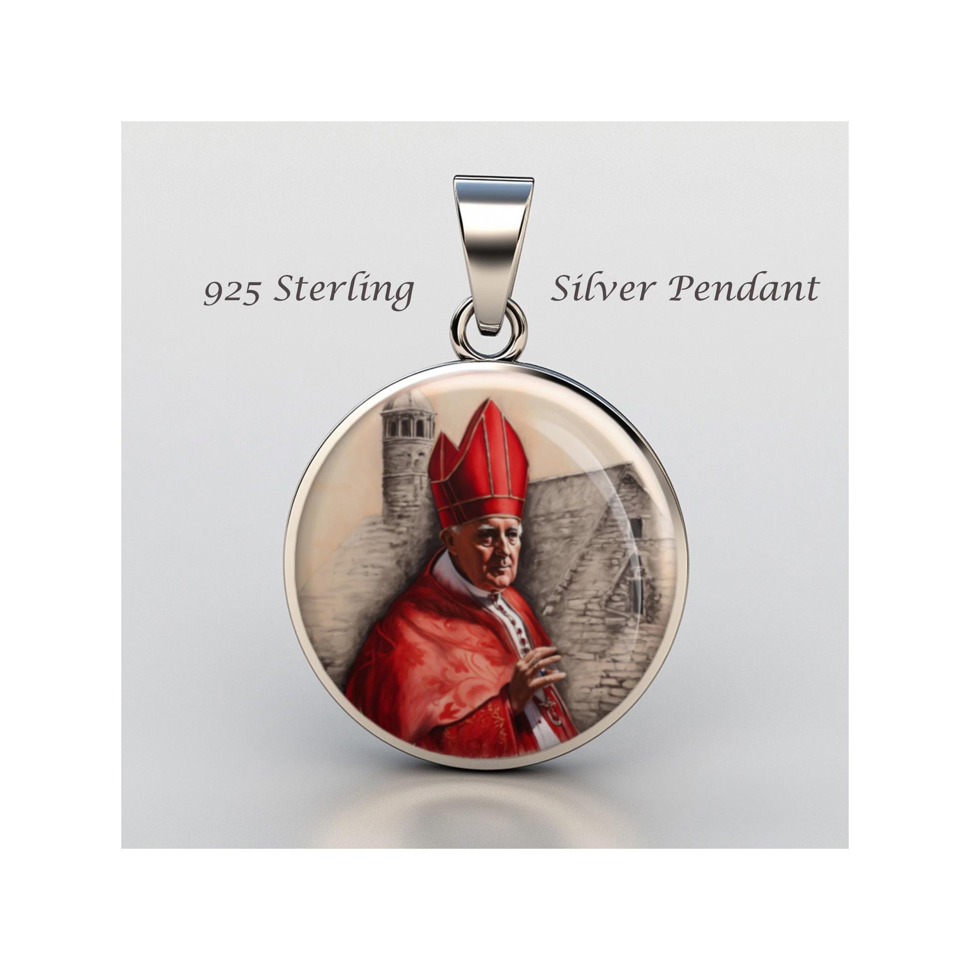 Dedicated to Saint Lawrence O Toole, this 20mm sterling silver pendant features a delicate design under a clear glass dome, crafted with high-quality paper. The pendant comes in a beautiful jewelry box, ready for gifting—perfect for birthdays, anniversaries, Christmas, Easter, Baptism, First Communion, Confirmation, Mother's Day, or as a thoughtful gift for a loved one.