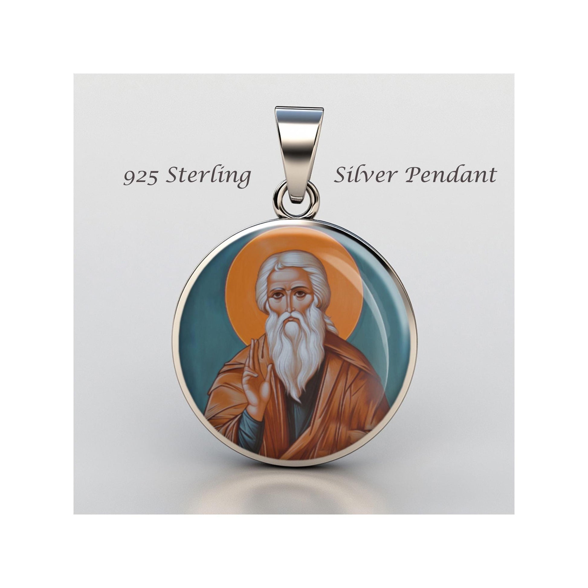 Dedicated to Saint Lazarus Of Murom, this 20mm sterling silver pendant features a delicate design under a clear glass dome, crafted with high-quality paper. The pendant comes in a beautiful jewelry box, ready for gifting—perfect for birthdays, anniversaries, Christmas, Easter, Baptism, First Communion, Confirmation, Mother's Day, or as a thoughtful gift for a loved one.