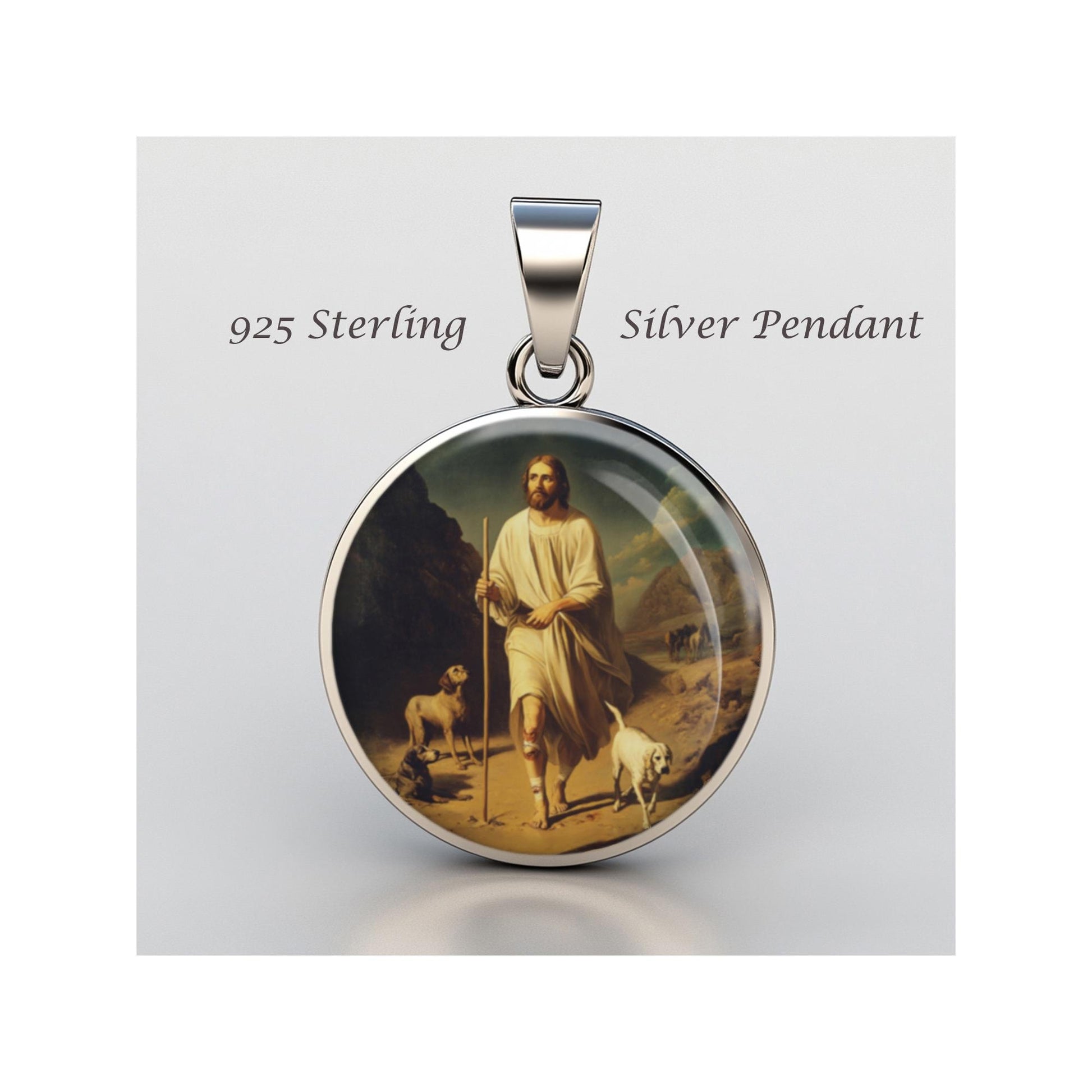 Dedicated to Saint Lazarus, this 20mm sterling silver pendant features a delicate design under a clear glass dome, crafted with high-quality paper. The pendant comes in a beautiful jewelry box, ready for gifting—perfect for birthdays, anniversaries, Christmas, Easter, Baptism, First Communion, Confirmation, Mother's Day, or as a thoughtful gift for a loved one.