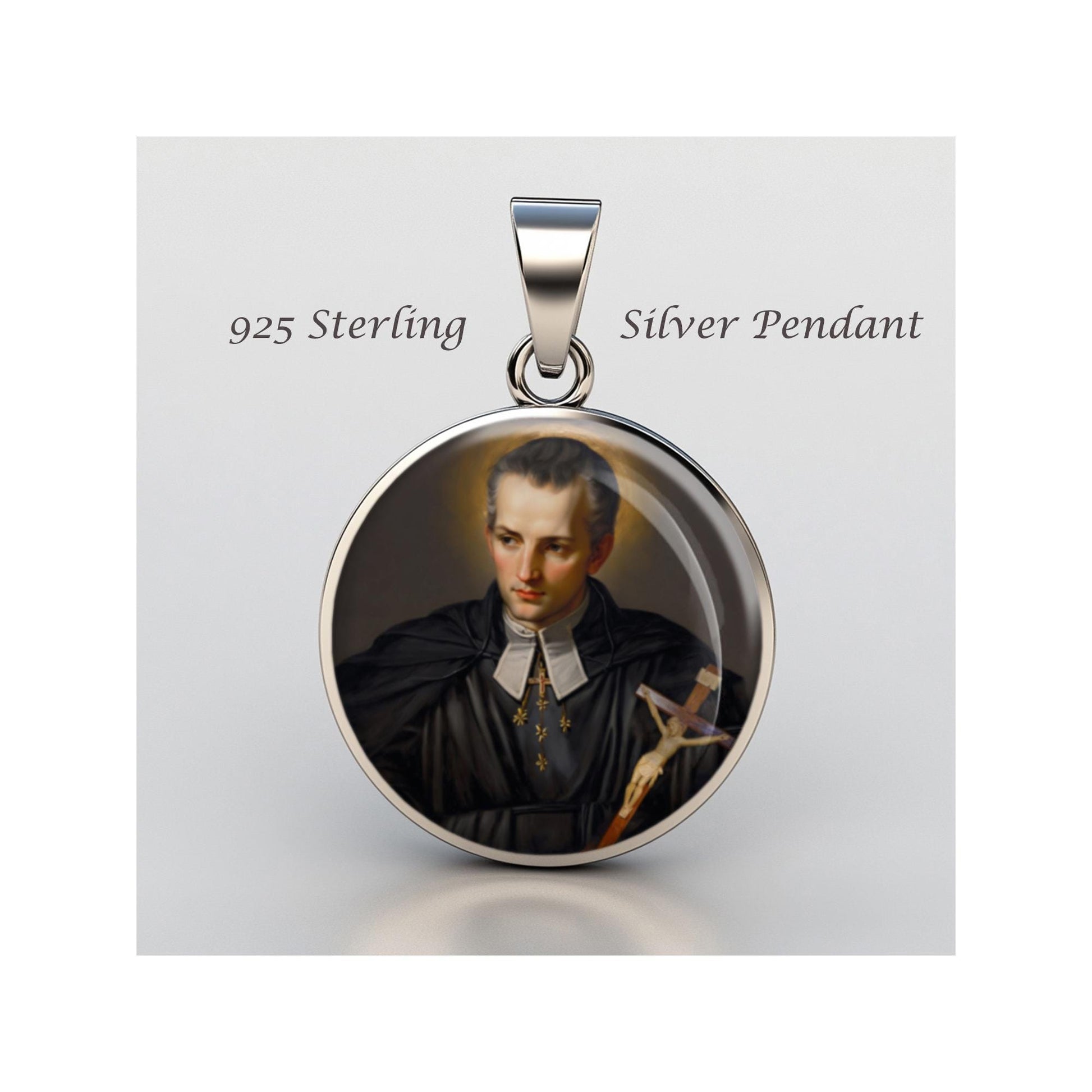 Dedicated to Saint Louis Marie Grignion De Montfort, this 20mm sterling silver pendant features a delicate design under a clear glass dome, crafted with high-quality paper. The pendant comes in a beautiful jewelry box, ready for gifting—perfect for birthdays, anniversaries, Christmas, Easter, Baptism, First Communion, Confirmation, Mother's Day, or as a thoughtful gift for a loved one.
