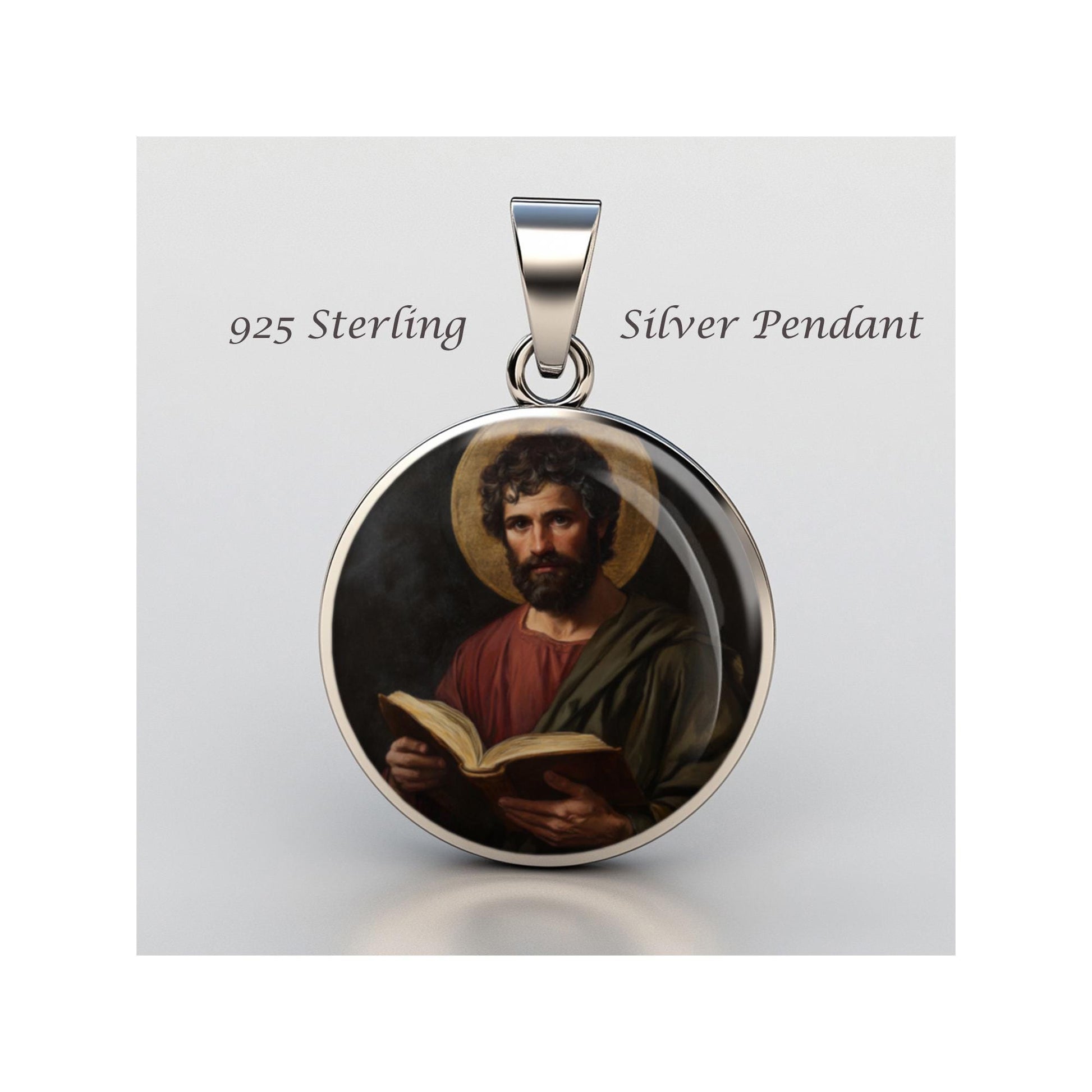 Dedicated to Saint Lucas Luke The Evangelist, this 20mm sterling silver pendant features a delicate design under a clear glass dome, crafted with high-quality paper. The pendant comes in a beautiful jewelry box, ready for gifting—perfect for birthdays, anniversaries, Christmas, Easter, Baptism, First Communion, Confirmation, Mother's Day, or as a thoughtful gift for a loved one.