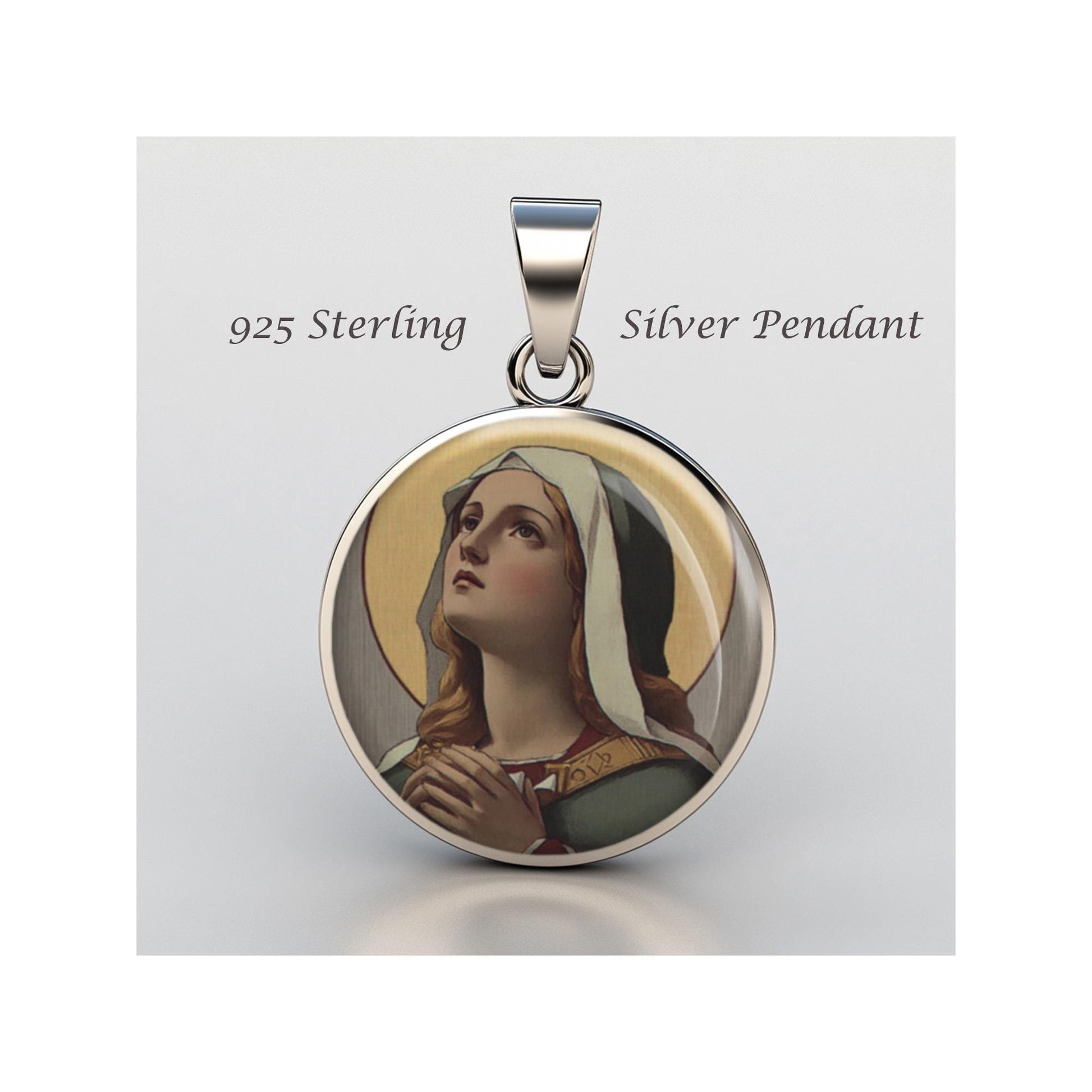 Dedicated to Saint Lydwina Euphori, this 20mm sterling silver pendant features a delicate design under a clear glass dome, crafted with high-quality paper. The pendant comes in a beautiful jewelry box, ready for gifting—perfect for birthdays, anniversaries, Christmas, Easter, Baptism, First Communion, Confirmation, Mother's Day, or as a thoughtful gift for a loved one.