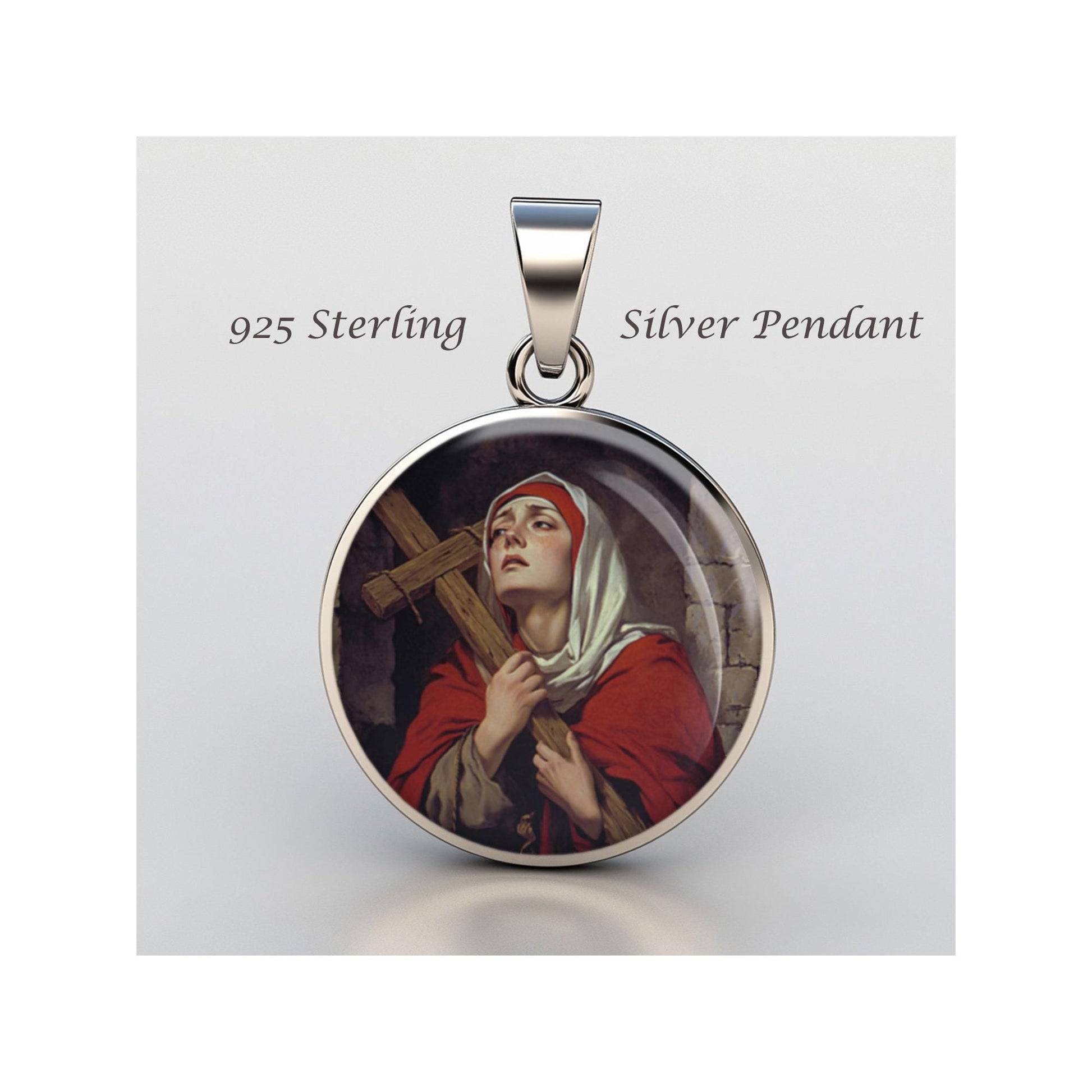 Dedicated to Saint Margaret Of Cortona, this 20mm sterling silver pendant features a delicate design under a clear glass dome, crafted with high-quality paper. The pendant comes in a beautiful jewelry box, ready for gifting—perfect for birthdays, anniversaries, Christmas, Easter, Baptism, First Communion, Confirmation, Mother's Day, or as a thoughtful gift for a loved one.