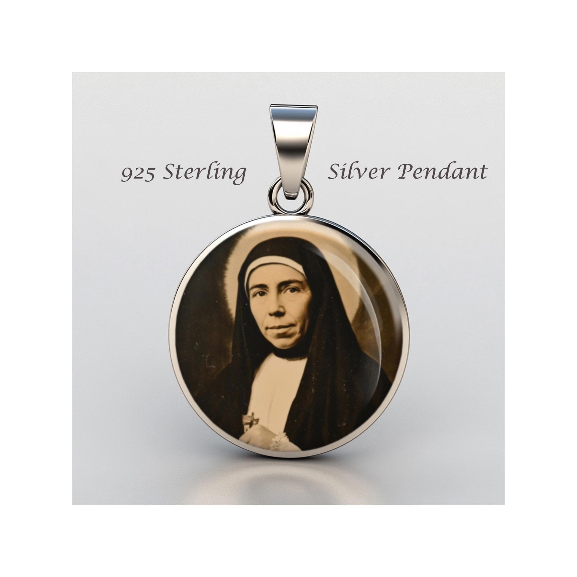 Dedicated to Saint Maria Domenica Mazzarello, this 20mm sterling silver pendant features a delicate design under a clear glass dome, crafted with high-quality paper. The pendant comes in a beautiful jewelry box, ready for gifting—perfect for birthdays, anniversaries, Christmas, Easter, Baptism, First Communion, Confirmation, Mother's Day, or as a thoughtful gift for a loved one.