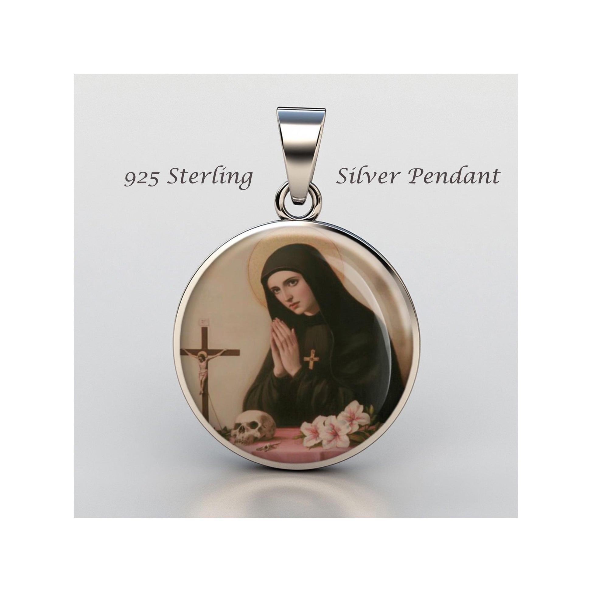 Dedicated to Saint Mariana Of Quito, this 20mm sterling silver pendant features a delicate design under a clear glass dome, crafted with high-quality paper. The pendant comes in a beautiful jewelry box, ready for gifting—perfect for birthdays, anniversaries, Christmas, Easter, Baptism, First Communion, Confirmation, Mother's Day, or as a thoughtful gift for a loved one.