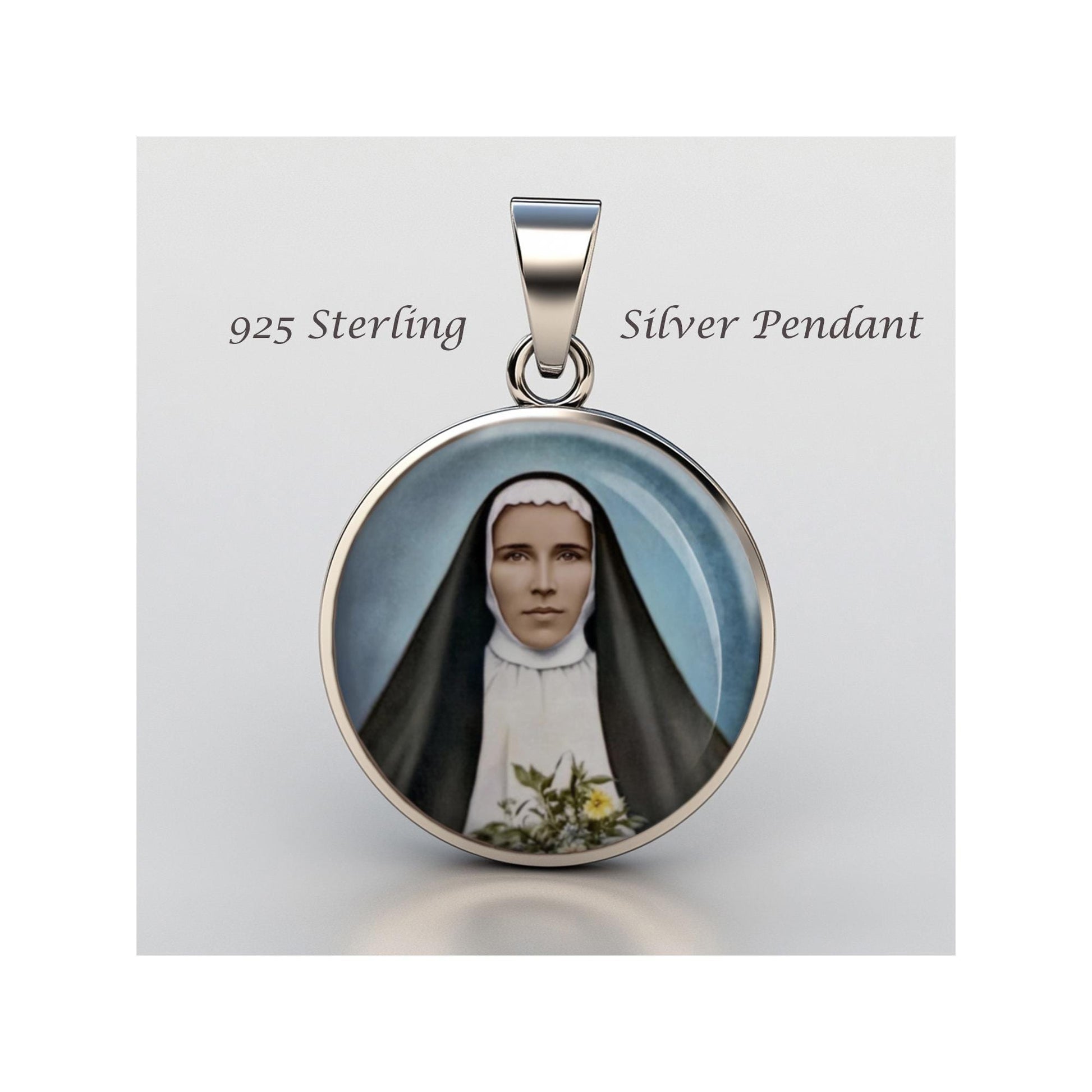 Dedicated to Saint Marianne Cope, this 20mm sterling silver pendant features a delicate design under a clear glass dome, crafted with high-quality paper. The pendant comes in a beautiful jewelry box, ready for gifting—perfect for birthdays, anniversaries, Christmas, Easter, Baptism, First Communion, Confirmation, Mother's Day, or as a thoughtful gift for a loved one.