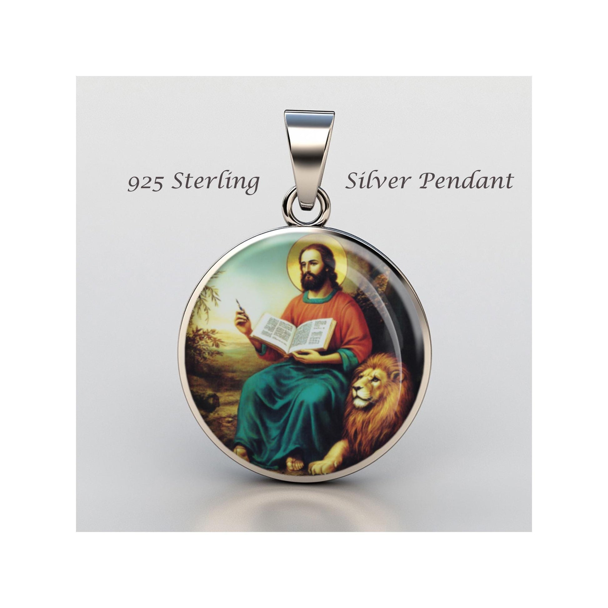 Dedicated to Saint Mark The Evangelist, this 20mm sterling silver pendant features a delicate design under a clear glass dome, crafted with high-quality paper. The pendant comes in a beautiful jewelry box, ready for gifting—perfect for birthdays, anniversaries, Christmas, Easter, Baptism, First Communion, Confirmation, Mother's Day, or as a thoughtful gift for a loved one.