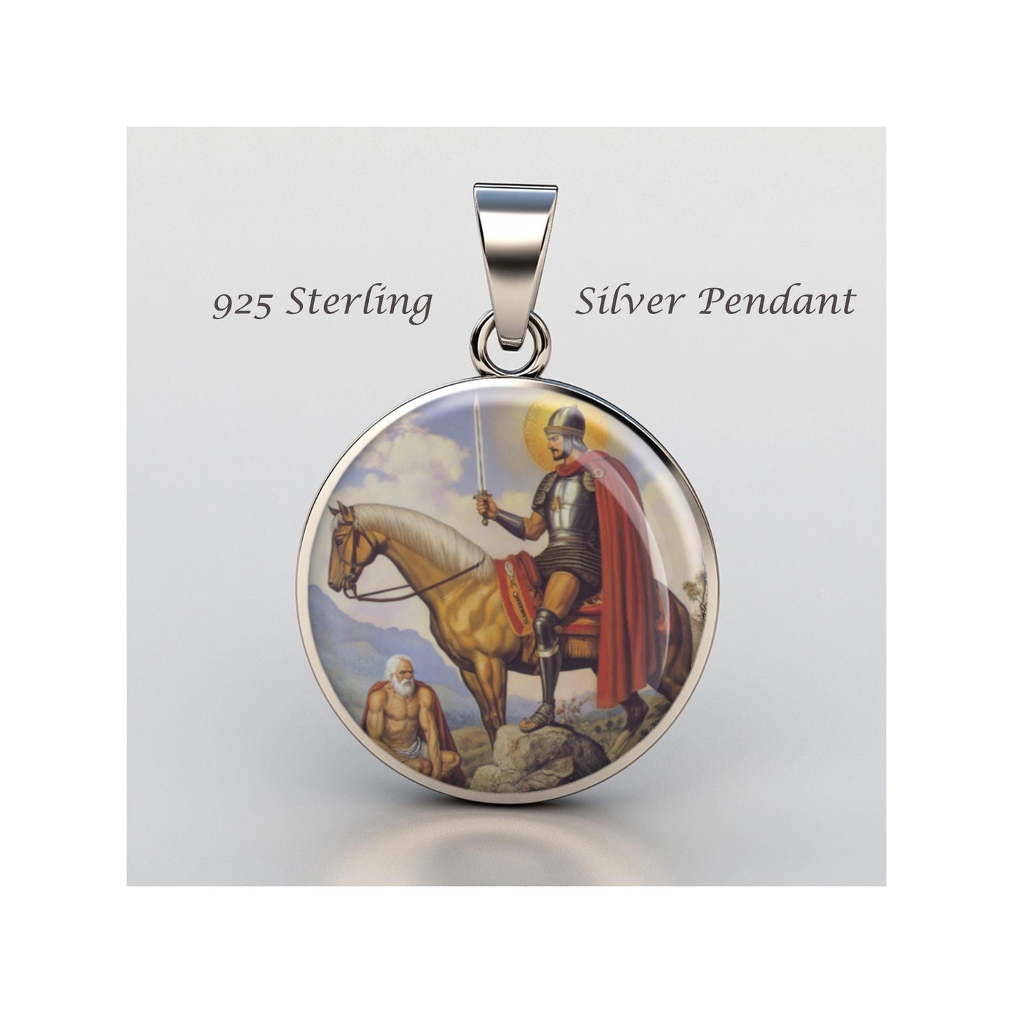 Dedicated to Saint Martin Of Tours, this 20mm sterling silver pendant features a delicate design under a clear glass dome, crafted with high-quality paper. The pendant comes in a beautiful jewelry box, ready for gifting—perfect for birthdays, anniversaries, Christmas, Easter, Baptism, First Communion, Confirmation, Mother's Day, or as a thoughtful gift for a loved one.
