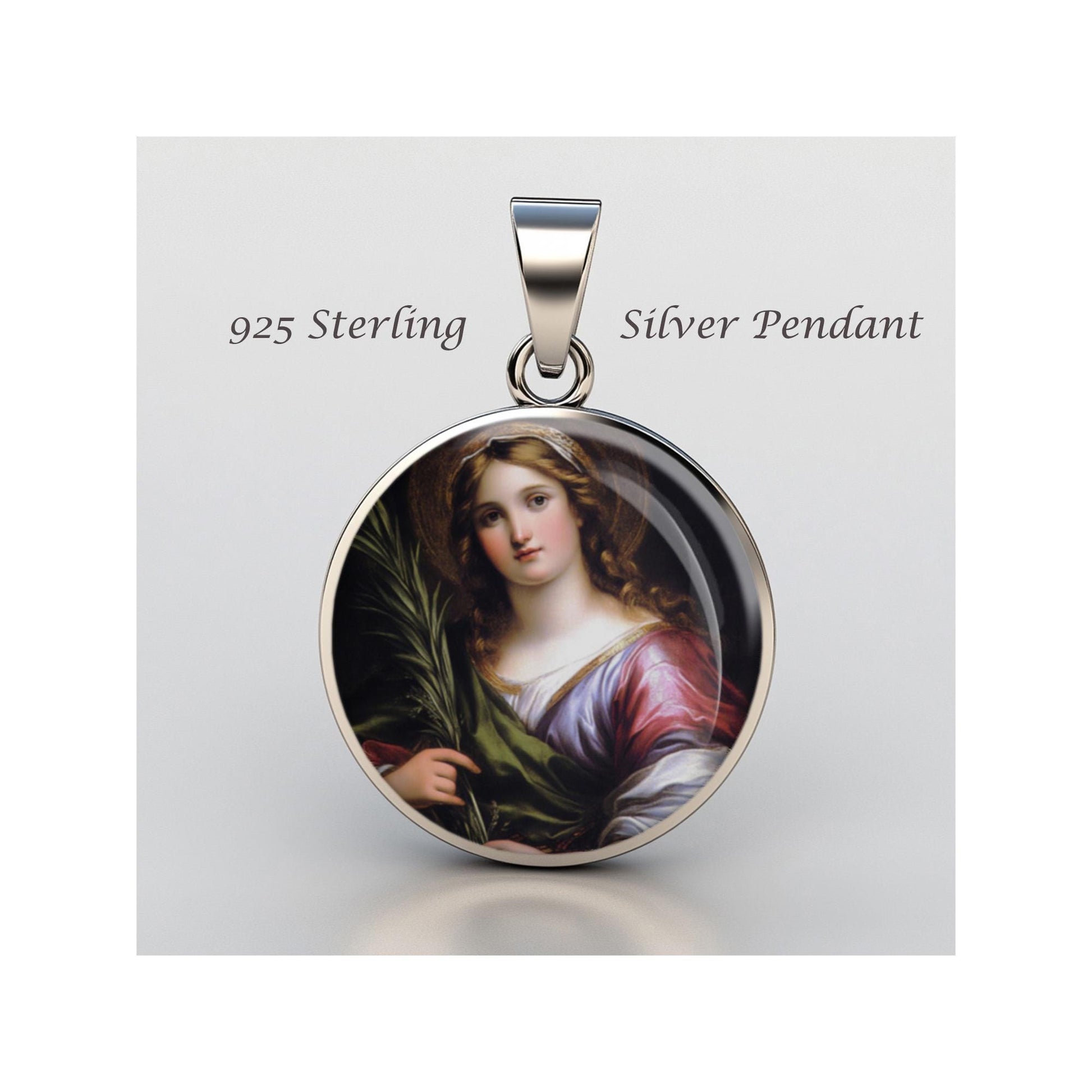 Dedicated to Saint Martina Of Rome, this 20mm sterling silver pendant features a delicate design under a clear glass dome, crafted with high-quality paper. The pendant comes in a beautiful jewelry box, ready for gifting—perfect for birthdays, anniversaries, Christmas, Easter, Baptism, First Communion, Confirmation, Mother's Day, or as a thoughtful gift for a loved one.