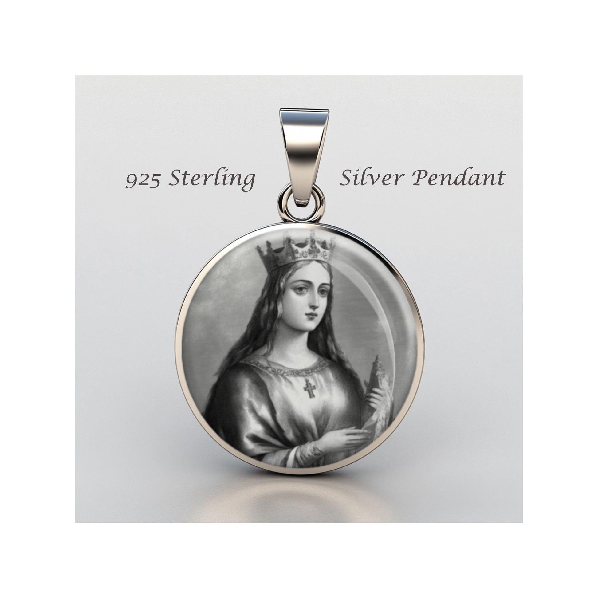 Dedicated to Saint Matilda, this 20mm sterling silver pendant features a delicate design under a clear glass dome, crafted with high-quality paper. The pendant comes in a beautiful jewelry box, ready for gifting—perfect for birthdays, anniversaries, Christmas, Easter, Baptism, First Communion, Confirmation, Mother's Day, or as a thoughtful gift for a loved one.