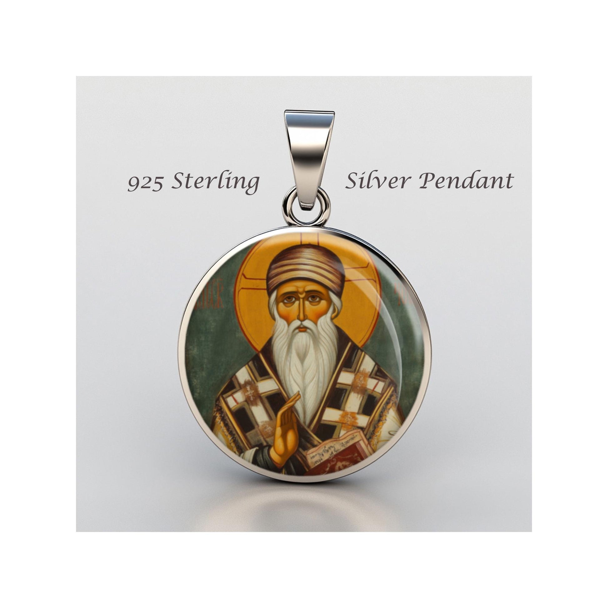 Dedicated to Saint Methodios Archbishop Of Constantinople, this 20mm sterling silver pendant features a delicate design under a clear glass dome, crafted with high-quality paper. The pendant comes in a beautiful jewelry box, ready for gifting—perfect for birthdays, anniversaries, Christmas, Easter, Baptism, First Communion, Confirmation, Mother's Day, or as a thoughtful gift for a loved one.