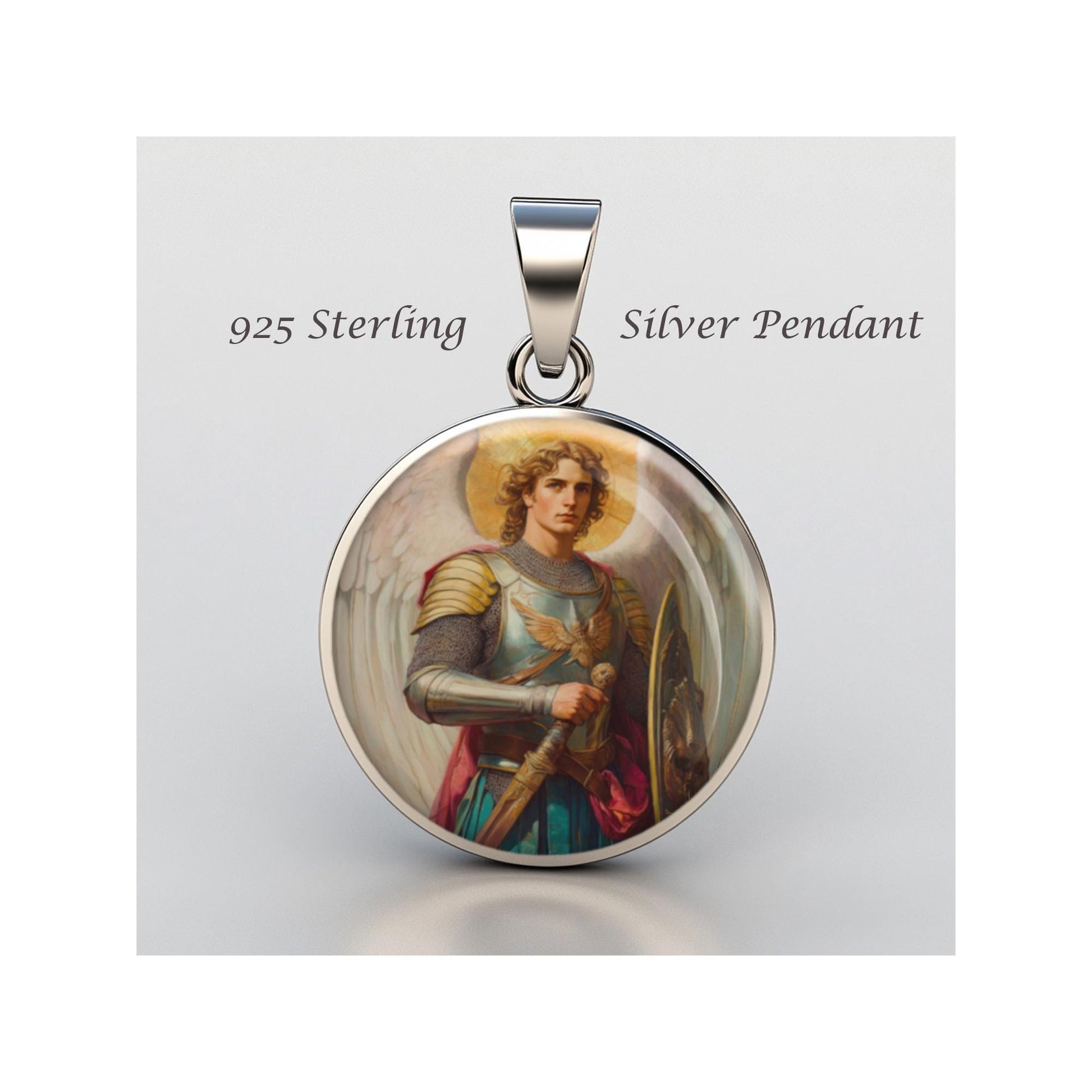 Dedicated to Saint Michael Archangel , this 20mm sterling silver pendant features a delicate design under a clear glass dome, crafted with high-quality paper. The pendant comes in a beautiful jewelry box, ready for gifting—perfect for birthdays, anniversaries, Christmas, Easter, Baptism, First Communion, Confirmation, Mother's Day, or as a thoughtful gift for a loved one.