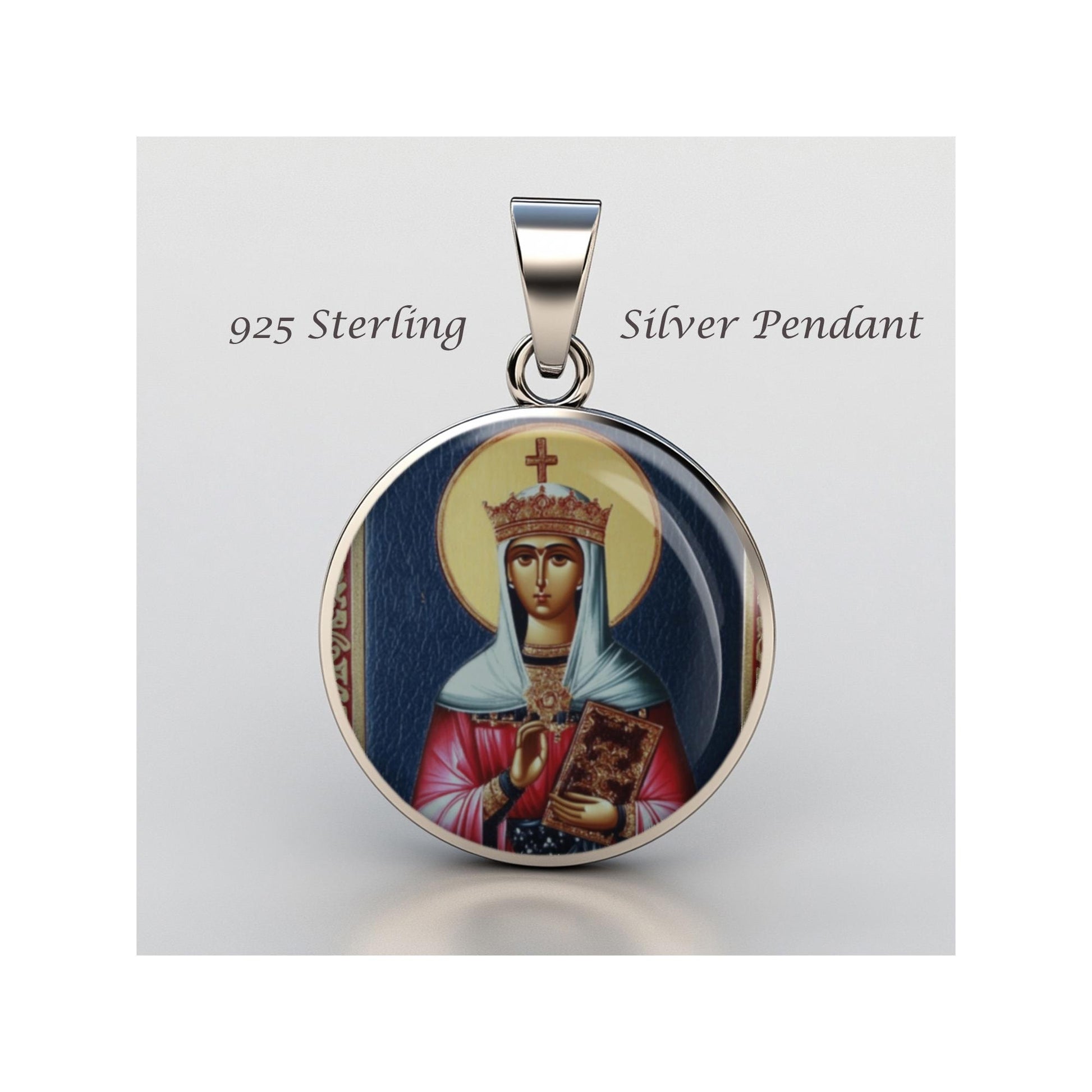 Saint Olena Religious Devotional sterling silver 925 Christian Medal Patron Pendant