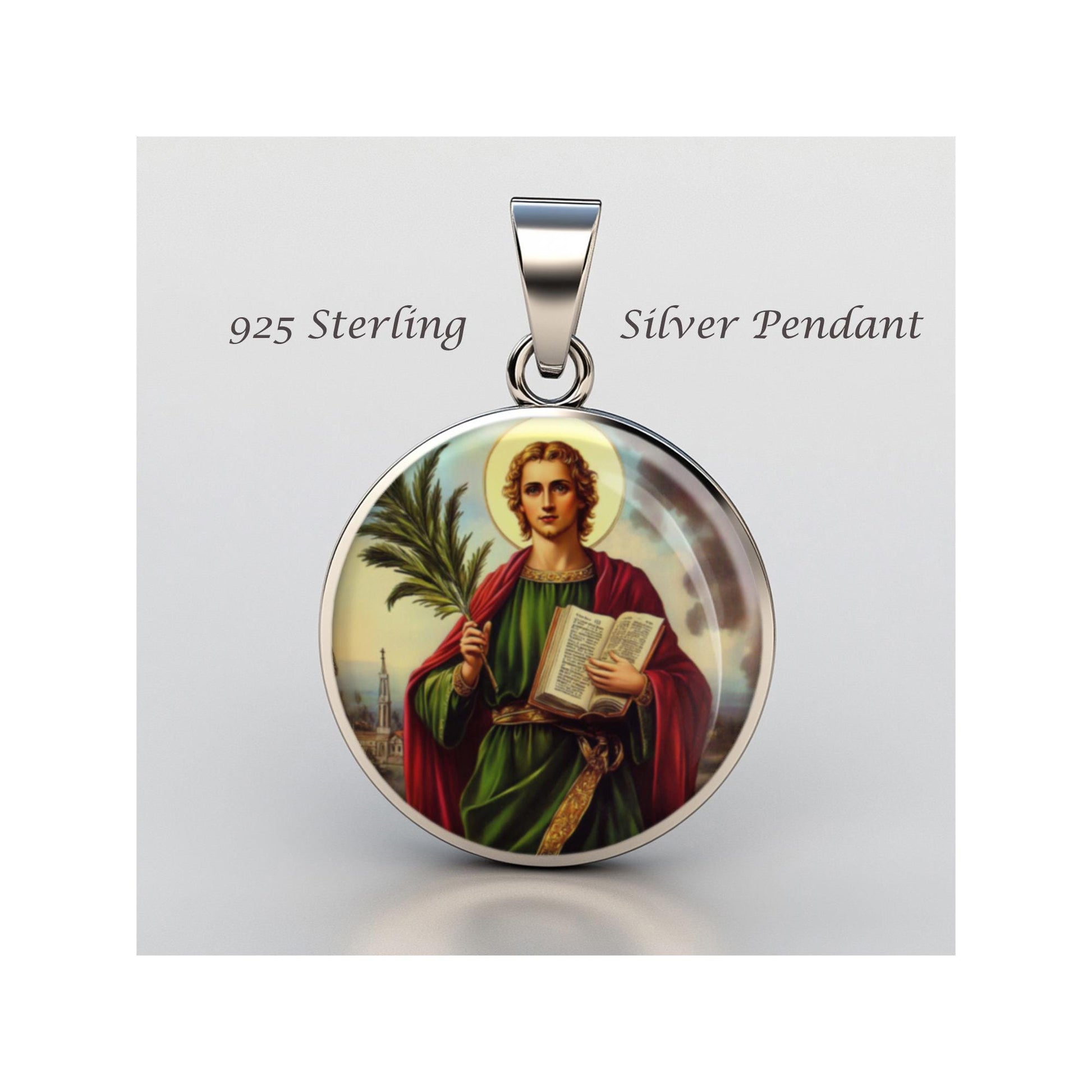 Dedicated to Saint Pancras Pancracio Of Rome, this 20mm sterling silver pendant features a delicate design under a clear glass dome, crafted with high-quality paper. The pendant comes in a beautiful jewelry box, ready for gifting—perfect for birthdays, anniversaries, Christmas, Easter, Baptism, First Communion, Confirmation, Mother's Day, or as a thoughtful gift for a loved one.