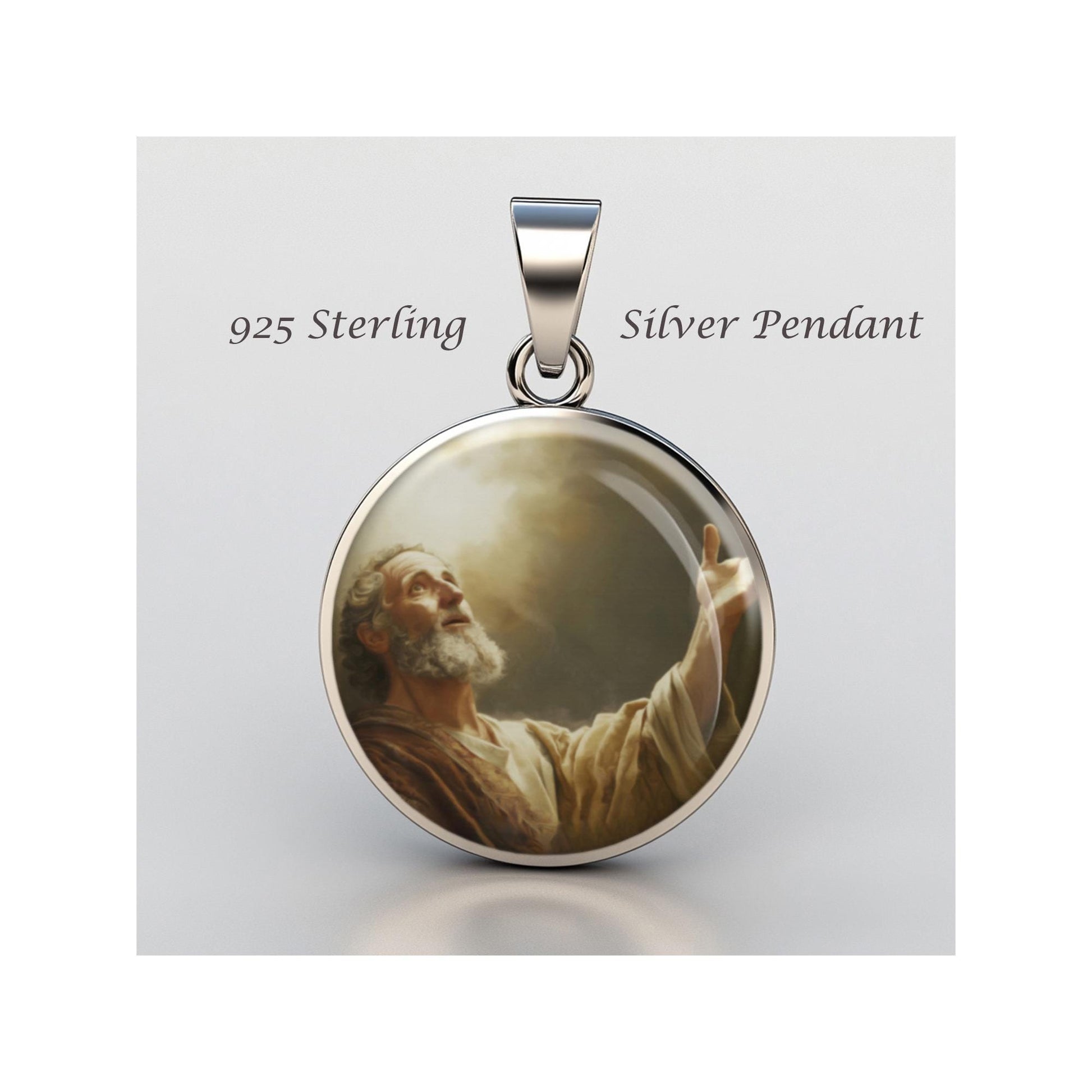 Dedicated to Saint Paul The Apostle, this 20mm sterling silver pendant features a delicate design under a clear glass dome, crafted with high-quality paper. The pendant comes in a beautiful jewelry box, ready for gifting—perfect for birthdays, anniversaries, Christmas, Easter, Baptism, First Communion, Confirmation, Mother's Day, or as a thoughtful gift for a loved one.