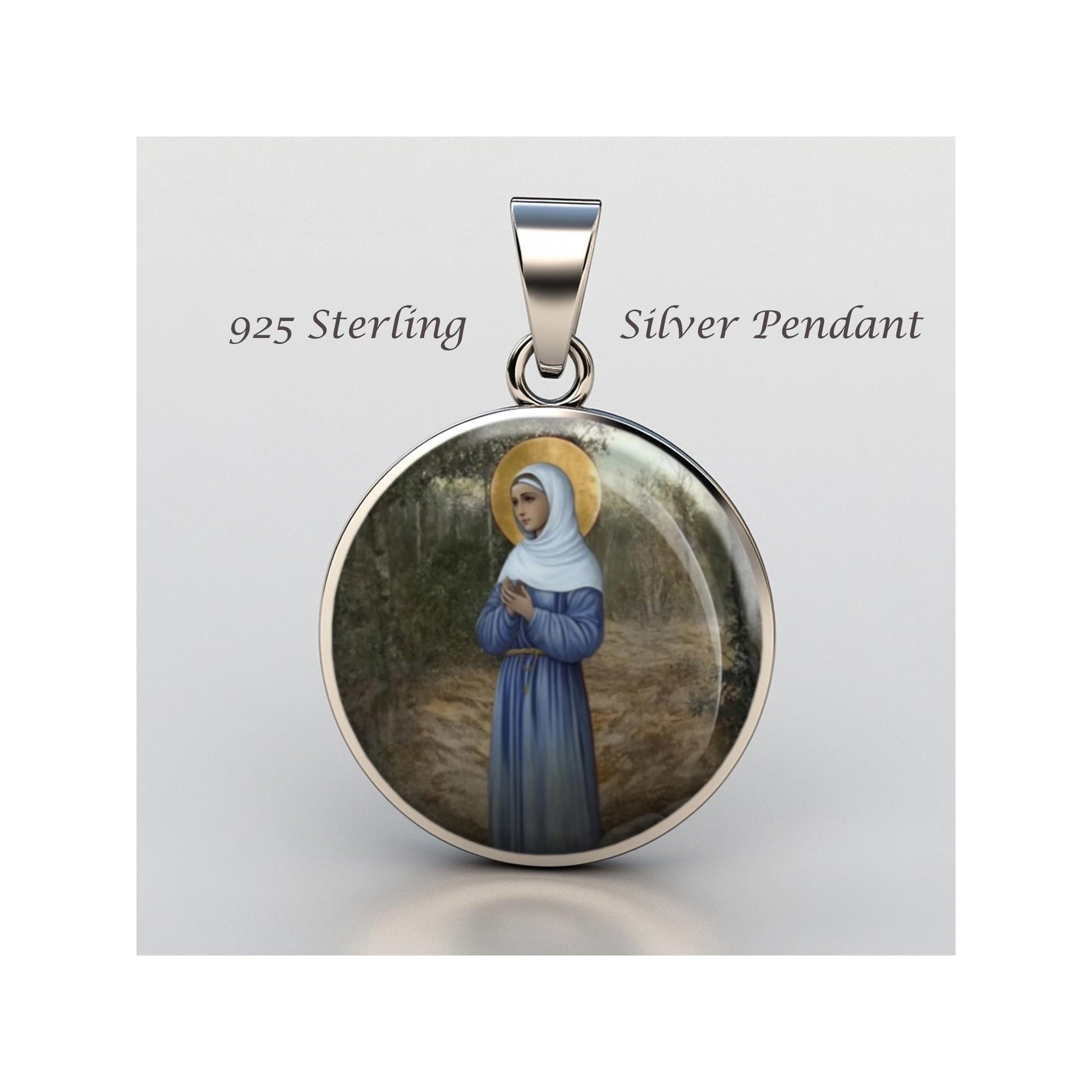 Dedicated to Saint Pelagia Ivanovna Blessed, this 20mm sterling silver pendant features a delicate design under a clear glass dome, crafted with high-quality paper. The pendant comes in a beautiful jewelry box, ready for gifting—perfect for birthdays, anniversaries, Christmas, Easter, Baptism, First Communion, Confirmation, Mother's Day, or as a thoughtful gift for a loved one.