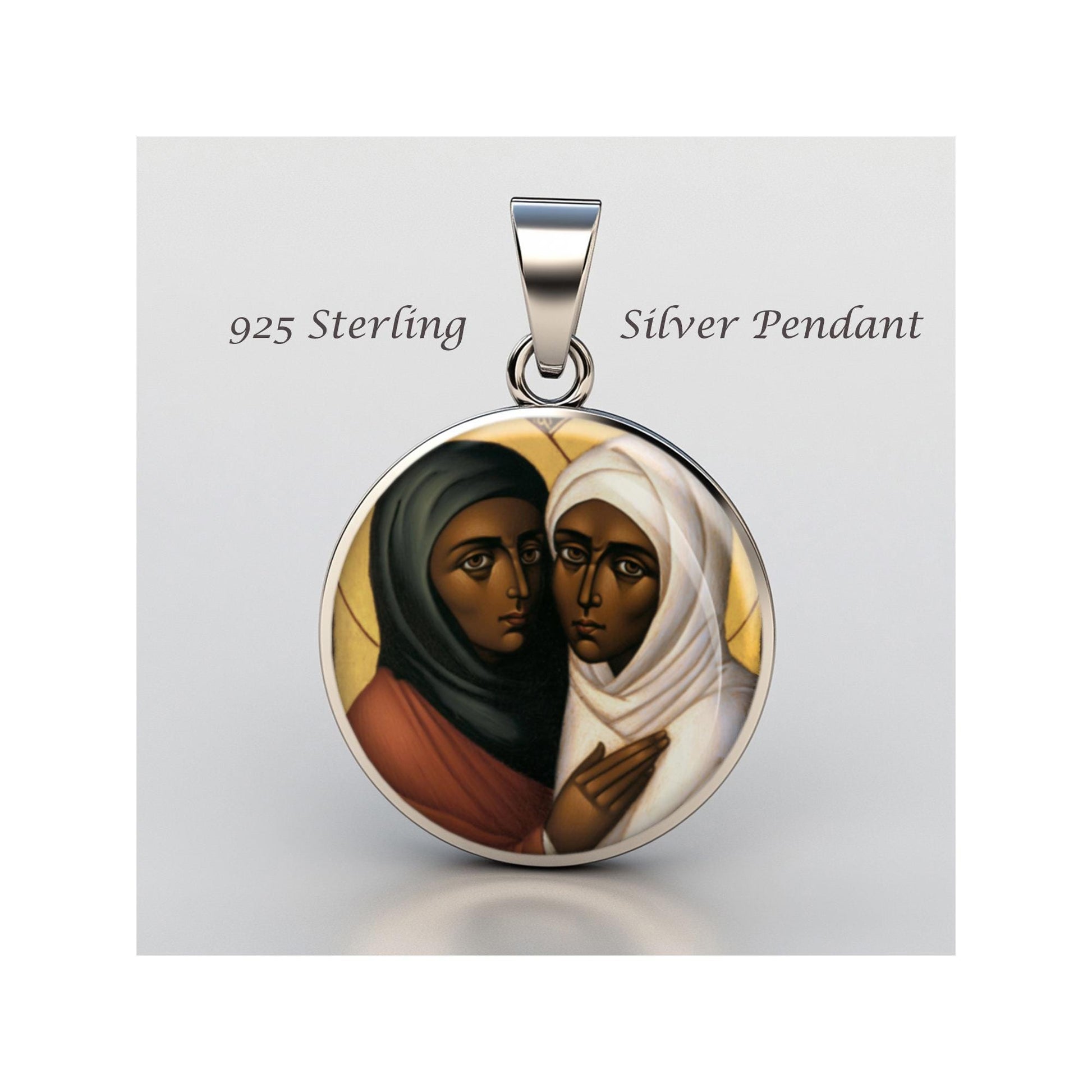 Dedicated to Saint Perpetua And Felicity, this 20mm sterling silver pendant features a delicate design under a clear glass dome, crafted with high-quality paper. The pendant comes in a beautiful jewelry box, ready for gifting—perfect for birthdays, anniversaries, Christmas, Easter, Baptism, First Communion, Confirmation, Mother's Day, or as a thoughtful gift for a loved one.