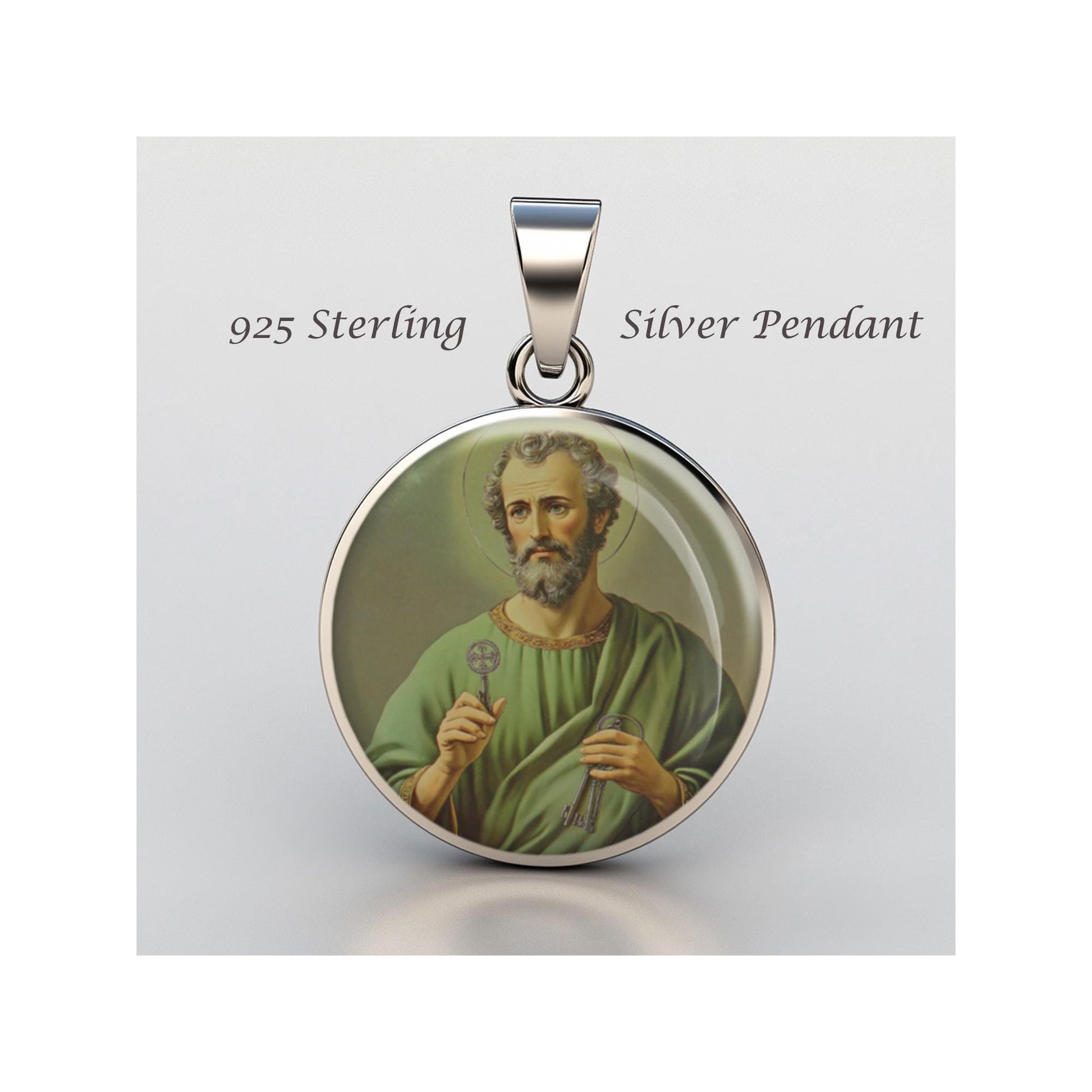 Dedicated to Saint Peter The Apostle, this 20mm sterling silver pendant features a delicate design under a clear glass dome, crafted with high-quality paper. The pendant comes in a beautiful jewelry box, ready for gifting—perfect for birthdays, anniversaries, Christmas, Easter, Baptism, First Communion, Confirmation, Mother's Day, or as a thoughtful gift for a loved one.