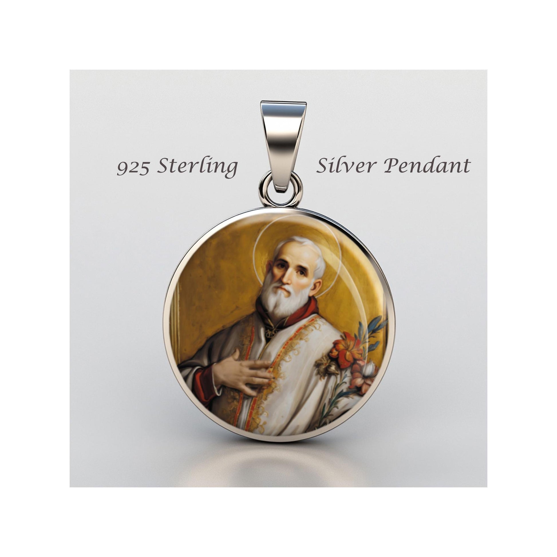 Dedicated to Saint Philip Neri, this 20mm sterling silver pendant features a delicate design under a clear glass dome, crafted with high-quality paper. The pendant comes in a beautiful jewelry box, ready for gifting—perfect for birthdays, anniversaries, Christmas, Easter, Baptism, First Communion, Confirmation, Mother's Day, or as a thoughtful gift for a loved one.