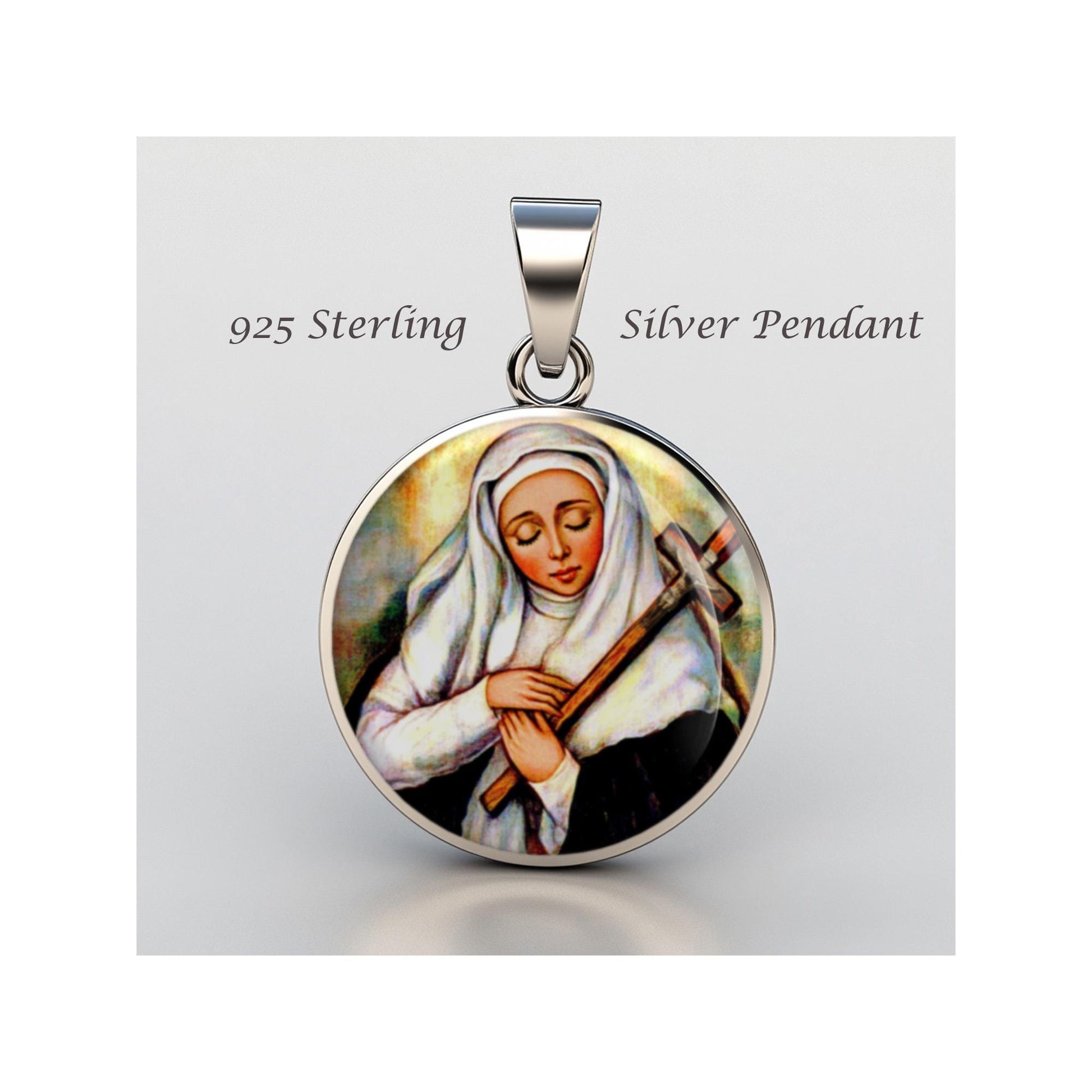 Dedicated to Saint Prioress Ingrid Of Skanninge Sweden Ingryda Szwedzka Elofsdotter, this 20mm sterling silver pendant features a delicate design under a clear glass dome, crafted with high-quality paper. The pendant comes in a beautiful jewelry box, ready for gifting—perfect for birthdays, anniversaries, Christmas, Easter, Baptism, First Communion, Confirmation, Mother's Day, or as a thoughtful gift for a loved one.