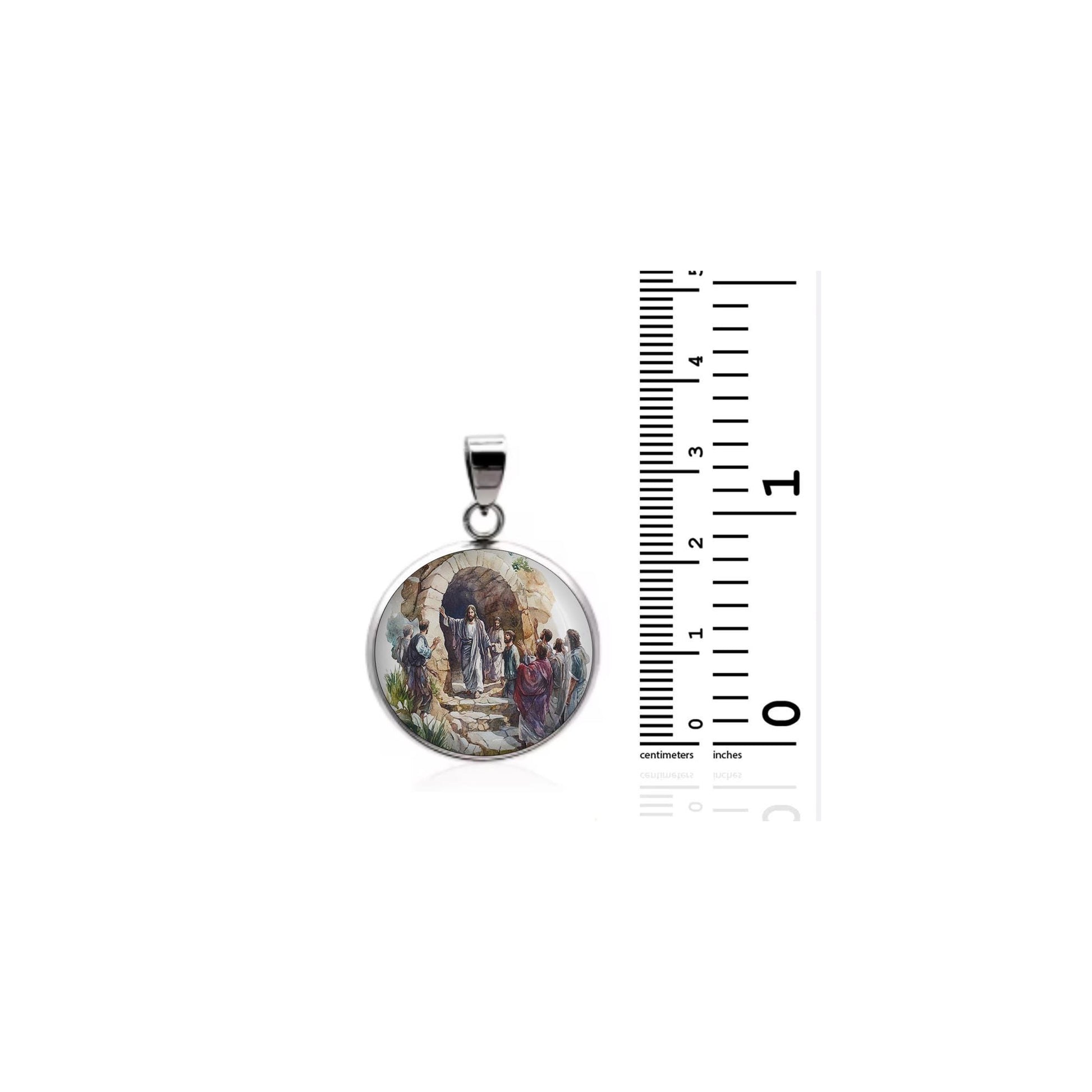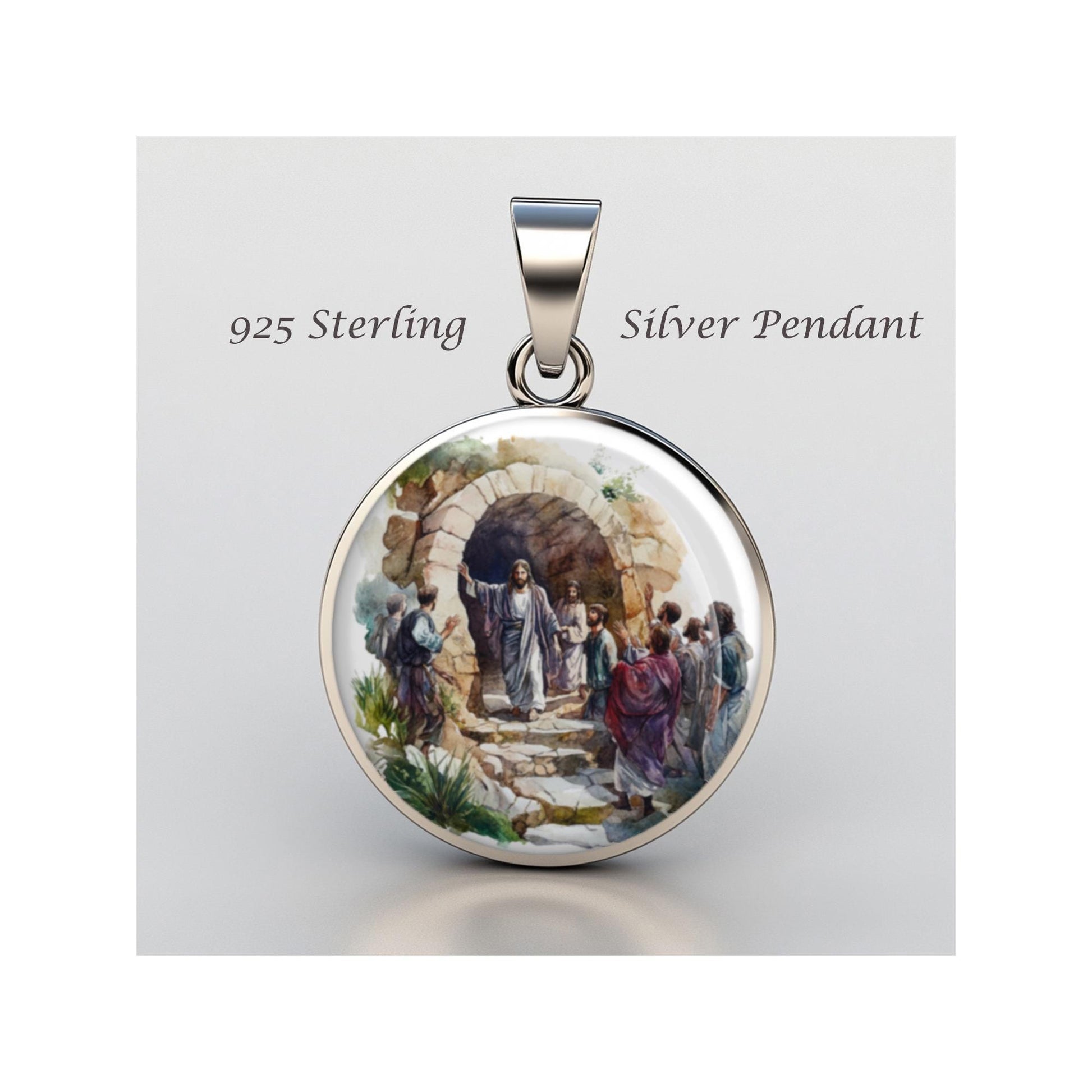 Dedicated to Saint Resurrection Of Lazarus Miracle Of Jesus Christ, this 20mm sterling silver pendant features a delicate design under a clear glass dome, crafted with high-quality paper. The pendant comes in a beautiful jewelry box, ready for gifting—perfect for birthdays, anniversaries, Christmas, Easter, Baptism, First Communion, Confirmation, Mother's Day, or as a thoughtful gift for a loved one.