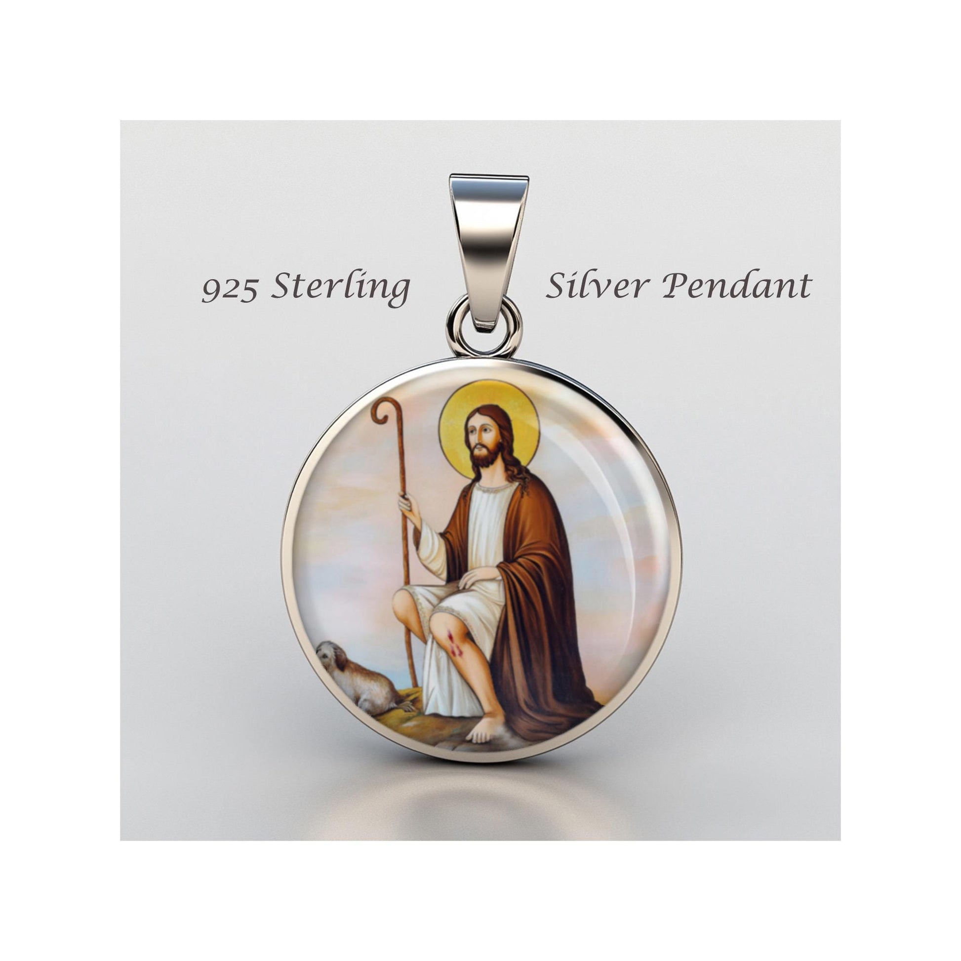 Dedicated to Saint Roch, this 20mm sterling silver pendant features a delicate design under a clear glass dome, crafted with high-quality paper. The pendant comes in a beautiful jewelry box, ready for gifting—perfect for birthdays, anniversaries, Christmas, Easter, Baptism, First Communion, Confirmation, Mother's Day, or as a thoughtful gift for a loved one.