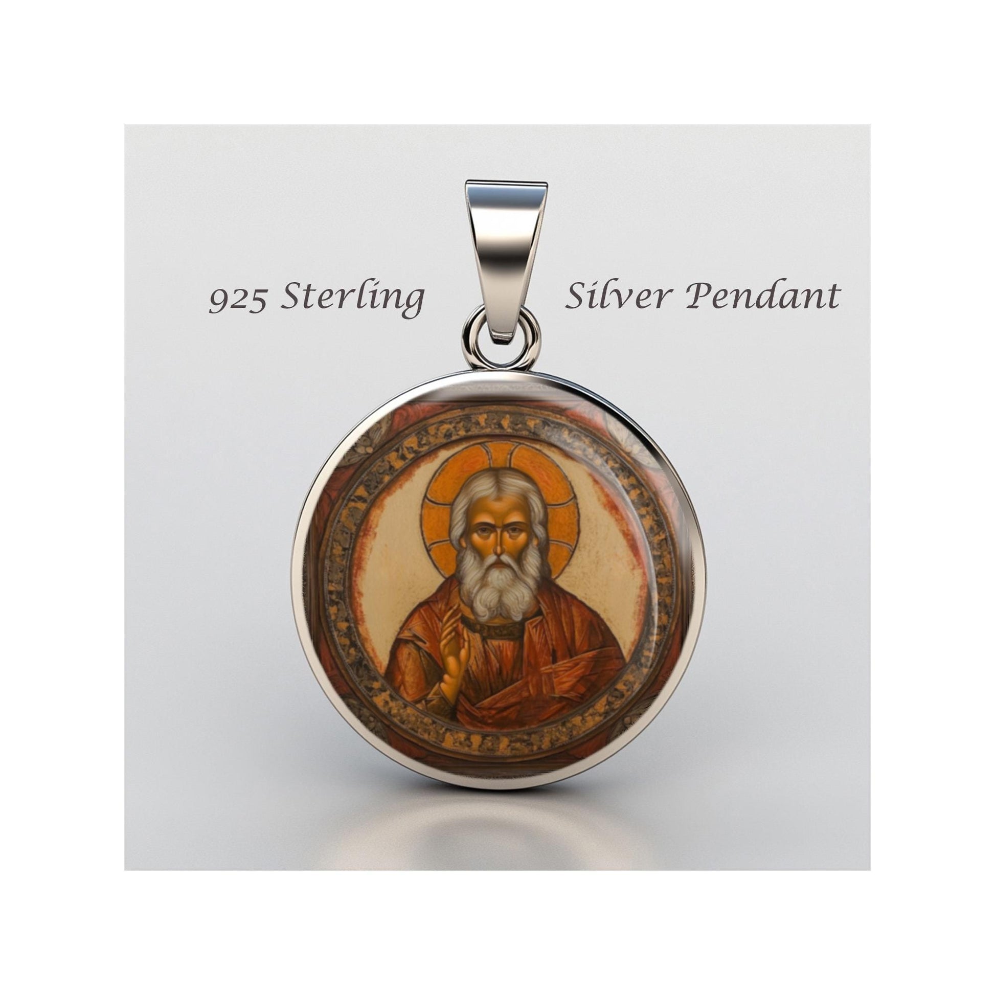 Dedicated to Saint Seraphim Serafim Of Sarov, this 20mm sterling silver pendant features a delicate design under a clear glass dome, crafted with high-quality paper. The pendant comes in a beautiful jewelry box, ready for gifting—perfect for birthdays, anniversaries, Christmas, Easter, Baptism, First Communion, Confirmation, Mother's Day, or as a thoughtful gift for a loved one.