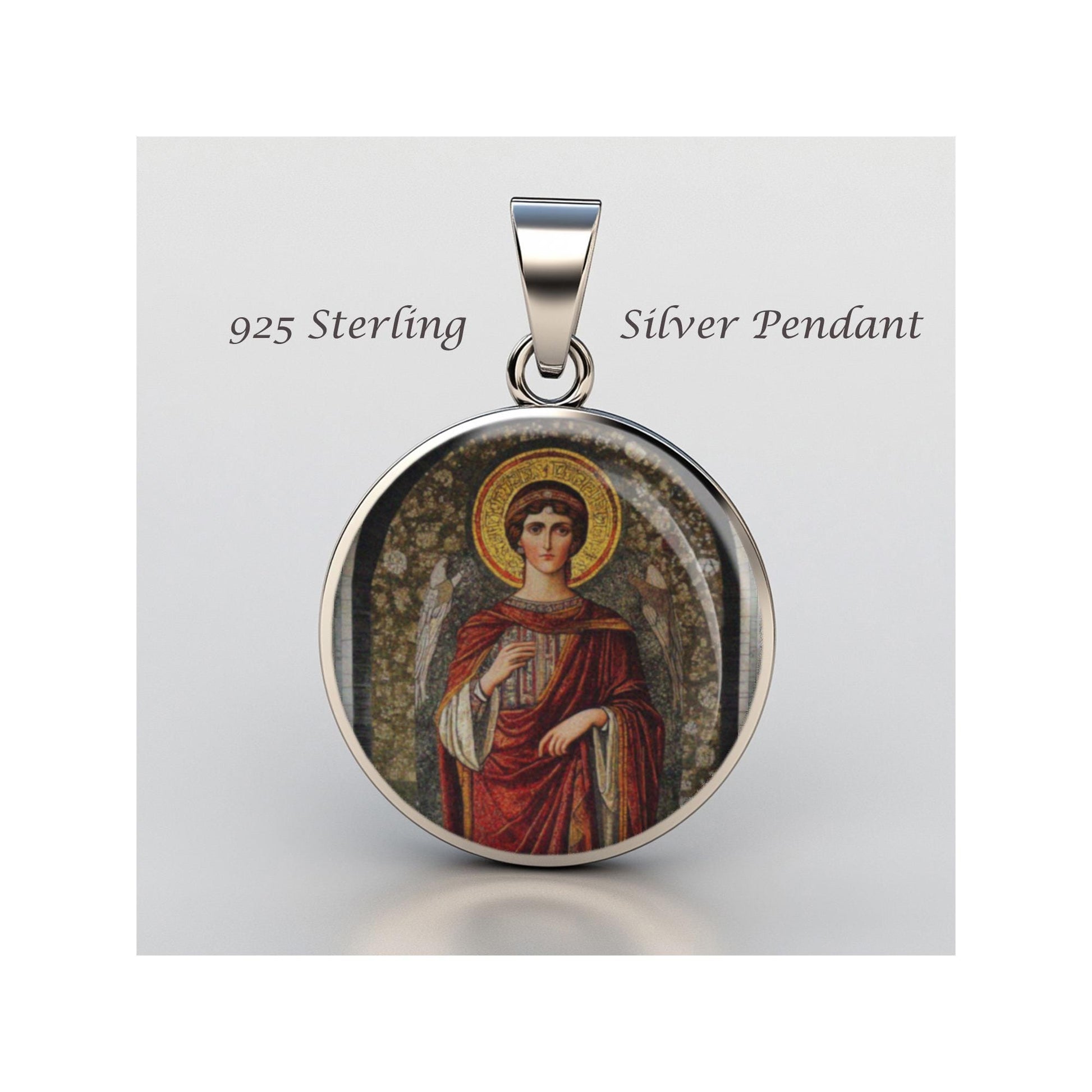 Dedicated to Saint Theodora, this 20mm sterling silver pendant features a delicate design under a clear glass dome, crafted with high-quality paper. The pendant comes in a beautiful jewelry box, ready for gifting—perfect for birthdays, anniversaries, Christmas, Easter, Baptism, First Communion, Confirmation, Mother's Day, or as a thoughtful gift for a loved one.